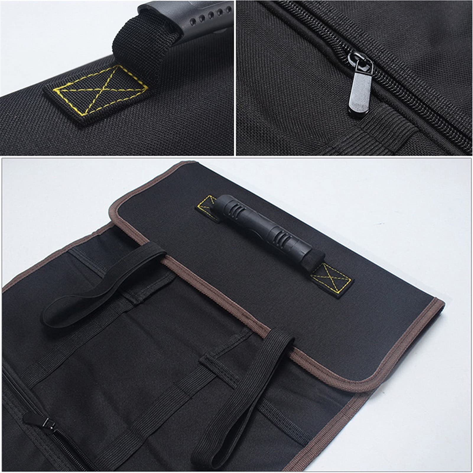 Parfait pour les bricoleurs, les maris, les pères, mais aussi pour les professionnels tels que les mécaniciens, les charpentiers, les électriciens, les réparateurs, etc. Suspension : il y a 2 ouvertures métalliques pour l'organisateur de clés, et le tissu double couche est utilisé dans cette position pour faciliter le chargement de clés lourdes et avoir une meilleure durabilité. 13 poches sont ajoutées et 3 poches pour les clés Allen hexagonales. Accès rapide : dispose de poches faciles à ouvrir et d'un système de fermeture à boucle sécurisée, vous permettant de trouver et de récupérer rapidement les outils dont vous avez besoin sans tâtonner, puis de l'enrouler fermement pour un rangement compact ou un transport portable Découvrez le sac à outils enroulable DUOKON, fabriqué en tissu Oxford robuste et durable. Avec ses poches séparées, il permet un rangement organisé de vos... Sac A Outils Professionnel Lot De 2 Sacs à Outils En Toile Oxford Durable Avec Sac à Sacoche Porte Outils Chantier Lot de 2 organiseurs de clés enroulables en toile de qualité supérieure : 12 poches métriques marquées avec les tailles 8, 9, 10, 11, 12, 13, 14, 15, 16, 17, 18, 19 mm et 13 poches SAE marquées avec les tailles 1/4, 5/16, 3/8, 7/16, 1/2, 9/16, 5/8, 11/16., 3/4, 13/16, 7/8, 15/16, 2,5 cm. Sac de Rangement pour Outils, Sac à Outils Robuste 13 Pouces C'est un excellent cadeau pour eux. Deux Velcro vous permettent d'ouvrir et de fermer la pochette rapidement et de sécuriser le contenu lorsque la pochette est fermée Compact, facile à transporter et à ranger lorsqu'il est enroulé ou posé à plat.