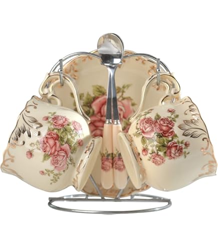 Fabriqué en porcelaine fine, parfait pour le thé et le café Ce lot comprend 4 tasses à thé et 4 soucoupes, un assortiment de 4 motifs roses chintz avec bordure dorée, chaque tasse peut contenir environ 237 ml... Passe au lave-vaisselle et en raison de la bordure dorée, ces tasses à thé et soucoupes ne passent pas au micro-ondes , Fabriqué en Chine Pas de coffret cadeau. Tea Cup Set Of 6 Grande Tasse Couverte Et Soucoupe En Porcelaine De Sèvres, 19ème Siècle Tea Cups For Sale Tasse et soucoupe à petit-déjeuner en porcelaine bleue Chintz, 16,7x6 La collection rose chintz de Gracie China, par Coastline Imports, est une jolie porcelaine qui peut compléter la cuisine, la salle à manger et le salon. Cet ensemble n'est pas livré dans un coffret cadeau.