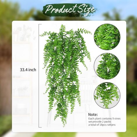 Les feuilles vert foncé alternent vert clair, couleurs vives et petites feuilles élégantes qui semblent plus réalistes et peuvent fournir une décoration vivante et réaliste pour votre maison. Idéal pour la décoration de mariage, les tentures murales, le jardin, les clôtures, etc.Cadeau unique : Son design simple et élégant offre de nombreuses possibilités d'utilisation. Inoffensif pour les humains et les animaux, il conserve sa fraîcheur et sa beauté longtemps Livré chez vous au meilleur prix : JustYit 2 Pièces Fougère Artificielle Plante Fausse Plantes Deco Plante Artificielle Exterieur pour Célébration, Mariage, Cui Ils sont écologiques et respectueux de l'environnement, sans danger pour les humains et les animaux de compagnie, et peuvent rester frais et beaux pendant longtemps. Laissez-vous sentir dans la nature et illuminez votre espace, ajoutez des paysages à votre terrasse ou balcon pendant longtemps. Matériel: Ces fausse plantes deco sont faites de plastique de haute qualité,les feuilles ne tombent pas facilement. Elle n'a pas besoin de soin, pour vous gagner beaucoup de temps, et ni l'eau ni soleil ni terre pour garder l'environement bien propre. Personne ne peut refuser un si beau cadeau de vigne suspendu. vous pouvez le laver pour la réutilisation . Cadeau Unique: Design simple et généreux, polyvalent, très approprié comme cadeau. Plante Artificielle Tombante Etagere Cuisine BELLE VOUS Fausse Plante Verte, Violette Et Blanche En Pot (Lot De 4) - Plante Artificielle Interieur Et Extérieur - Pour Maison, Bureau, Salle De Bains, Cuisine, Bureau, Étagère Et Olivier Artificiel Plante Artificielle Tombante, 2 Plantes Artificielle avec Pots, Plantes... Fougère artificielle en piquet pour extérieur Couleur v002239 Artificielles La R