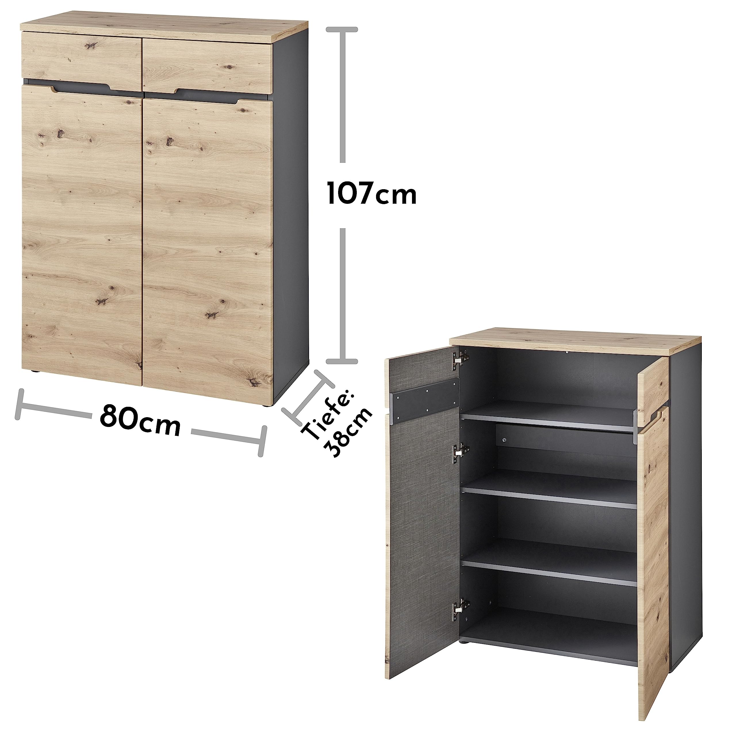 Nous sommes synonymes de la meilleure qualité et c'est pourquoi nous travaillons uniquement avec des fournisseurs soigneusement sélectionnés et renommés. Stella Trading Lilly Commode Aspect chêne Sonoma – Buffet Moderne avec... L'armoire est polyvalente et peut servir d'armoire ménagère, d'armoire de rangement, d'armoire de classement ou d'armoire polyvalente. L'armoire à chaussures Memphis convainc par sa combinaison de couleurs de bon goût. Meuble Memphis Stella Stella Trading Memphis Buffet Haut Aspect Chêne Artisan Graphite Stella Trading Armoire Stella Trading Jazz 6 Cuisine Moderne sans électroménager, Anthracite Les poignées personnalisées donnent la touche finale à ce meuble. Stella Trading Memphis Haute Flottante Aspect Artisan Armoire de Salle de Bain avec Porte Miroir, Bois d Contenu de l'emballage : 1 meuble à chaussures de 80 x 192 x 38 cm (l x H x P) Les poignées personnalisées s'adaptent à la forme réduite et soulignent le style moderne du meuble. Nous sommes garants de la qualité la meilleure et, pour cela, fabriquons tous nos meubles en Europe et collaborons avec des fournisseurs renommés et sélectionnés En plus des chaussures, des accessoires tels que des écharpes, des chapeaux, des dossiers ou des fournitures trouvent également un espace bien rangé. Moderne - L'armoire à chaussures se caractérise par une combinaison harmonieuse de couleurs en aspect chêne artisan et graphite. 1 notice de montage détaillée avec matériel de montage (français non garanti). Plus d'espace de rangement - Vous avez plus qu'une paire de chaussures ? Alors ce meuble à chaussures est fait pour vous. Huit étagères structurent l'espace de rangement et offrent suffisamment d'espace pour vos chaussures.