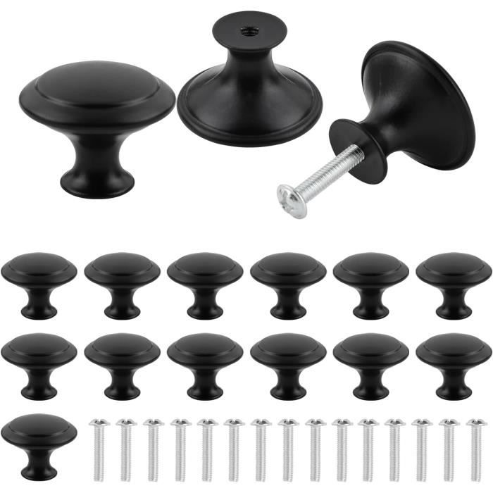 LÉGÈRETÉ : La taille compacte de ce Portes d'armoire vous permet de l'utiliser et de le ranger facilement au quotidien et ne prend pas trop de place, Rond Bouton de Meuble Moderne Noir vous pouvez le placer dans une boîte pour le garder lorsque vous n'en avez pas besoin. INSTALLATION FACILE : Nos Boutons de Placard Noirs sont également très faciles à installer, équipés des vis correspondantes, Boutons de Placard Noirs il suffit de trouver la position de montage et de percer les trous, puis de serrer les vis de l'arrière du panneau aux boutons de la commode pour terminer l'installation, très pratique. Bonne Conception de La Surface : Boutons de Porte Noir ont une bonne conception de la surface, des bords lisses sans bavures, pas de marques de soudure... Poignee Meuble Cuisine Bouton 16 Pièces Noir Mat Tiroir De Porte,Boutons De Placard Noirs Poignee De Meuble Cuisine 16 Pièces Boutons de Portes pour Placards, 30mm Bouton de Meuble DESIGN MODERNE CLASSIQUE : Ce Poignées de tiroir a une forme classique de champignon, la poignée de porte est ronde et légère, les bords sont lisses sans aspérités, pas de marques de soudure, l'épaisseur est appropriée, elle ne blessera pas vos mains lorsque vous l'utiliserez, ajoute une touche d'élégance à vos meubles, poignee de meuble s'accorde parfaitement avec les styles moderne, vintage, traditionnel et transitionnel.