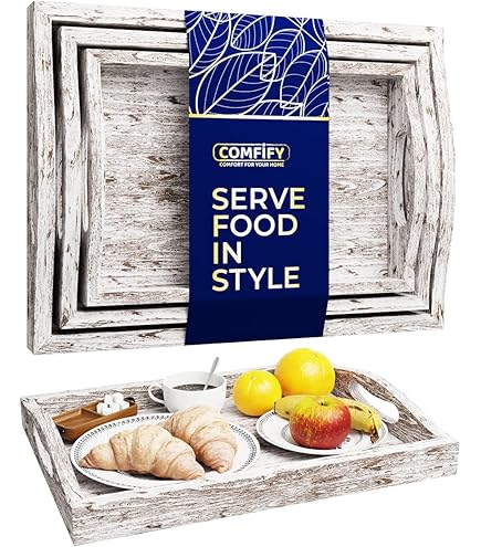 Le plus grand plateau, mesurant environ 29,2 cm de largeur et 45,7 cm de long, est parfait pour servir des repas ou présenter des décorations. Ensemble De 3 Plateaux De Service Petit-déjeuner Empilables En Bois Blanc Vieilli Vintage 04 00029 Avec son design emboîtable, ce plateau allie esthétique et praticité. Cuisine PLATEAU BOIS PLATEAUX De Service En Bambou Avec Poignée Plateau Repas Plateau De Service Non seulement il est conçu pour durer, mais il contribue également à la préservation de la nature car il est complètement biodégradable. Améliorez votre expérience culinaire avec notre plateau de service exquis. Fabriqué à partir de bois de paulownia de qualité supérieure, ce plateau est à la fois léger et durable. Fabriqué avec précision et conçu à la fois pour la fonctionnalité et le style, ce plateau est plus qu'un simple accessoire de cuisine, c'est une pièce maîtrisée. Les poignées offrent non seulement une facilité d'utilisation mais améliorent également son attrait esthétique. Ces dimensions les rendent parfaites pour servir des boissons et des apéritifs aux invités, faciliter le petit déjeuner au lit ou ajouter une touche d'élégance rustique à votre table basse. Pas besoin de vous soucier de l'espace limité de la cuisine ; ce plateau s'adapte parfaitement à votre placard, ce qui rend le rangement un jeu d'enfant. Cadeau parfait : cet ensemble de plateaux alimentaires décoratifs est un merveilleux cadeau pour des occasions telles que les pendaisons de crémaillère, les anniversaires, la fête des mères, Thanksgiving, Noël, les fêtes prénuptiales, et plus encore. Plateaux de service en bois de haute qualité : fabriqués à partir de bois de paulownia naturel, léger et robuste, nos plateaux de service de haute qualité sont vos compagnons idéaux pour servir des boissons, le petit déjeuner au lit ou le café dans les hôtels, les bars et les cafés. Écologique et chic pour votre espace : améliorez votre cuisine ou votre salon avec nos plateaux en bois respectueux de l'environnement qui disposent de poignées élégantes. Lot de 7 plateaux de service en bois avec poignée plateau polyvalent... En plus de sa praticité, ce plateau est écologique, ajoutant une touche naturelle et rustique à votre cuisine ou salon. Choisissez notre plateau de service pour améliorer votre style de service et laissez-le ajouter une touche d'élégance écologique à votre intérieur. Nos plateaux en bois sont soigneusement conçus pour économiser de l'espace grâce à leur fonction d'emboîtement. Fabriqués à partir de matériaux respectueux de l'environnement, ces plateaux apportent une touche rustique et neutre à votre décoration.