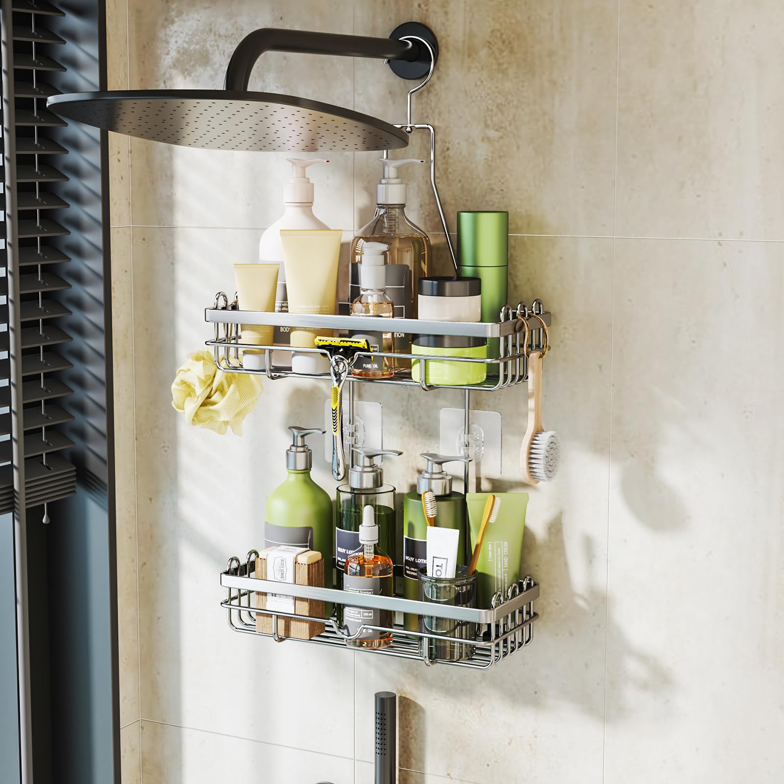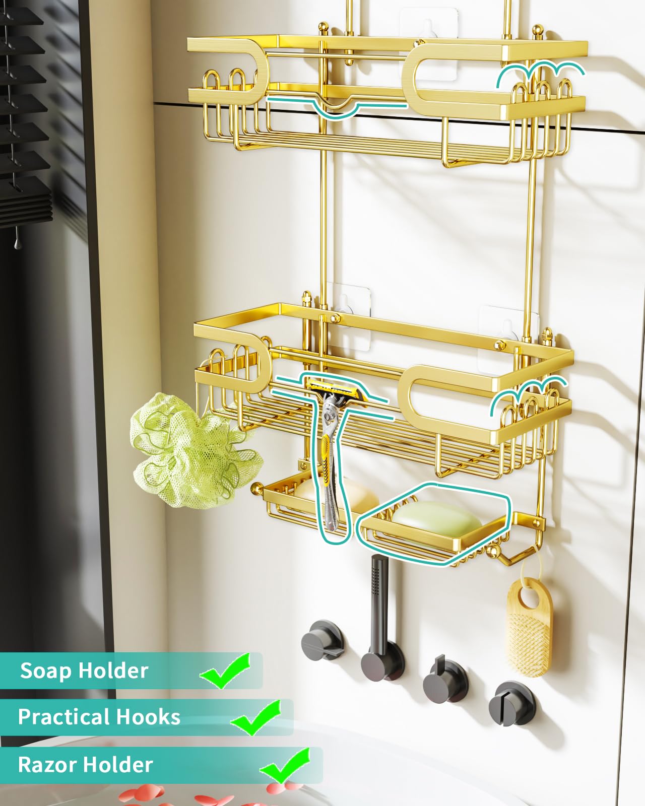 Matériau en acier inoxydable de haute qualité Fabriqué en acier inoxydable de haute qualité, imperméable et résistant à la rouille, peut être utilisé dans la salle de bain pendant une longue période HapiRm Étagère de douche à suspendre avec porte-savon et 4 crochets Design multifonctionnel] : notre étagère de douche dispose d'un design polyvalent qui peut être facilement tourné à 360° et accroché sur des portes en... Ce panier de douche sans perceuse peut supporter jusqu'à 13,6 kg. L'étagère de douche est utilisée pour stocker des bouteilles de douche telles que le shampooing et le gel douche, et les crochets peuvent être utilisés pour accrocher des rasoirs, des serviettes et des boules de bain Design multi-crochets Ces crochets d'étagères de salle de bain peuvent être utilisés pour accrocher des boules de bain, des petites serviettes, des rasoirs et d'autres petites fournitures de salle de bain Ce rangement de douche offre un rangement pratique pour tous vos accessoires de douche L'étagère de douche a un revêtement, qui peut isoler efficacement l'air et l'humidité et mieux prévenir la rouille. [Design multifonctionnel] : notre étagère de douche dispose d'un design polyvalent qui peut être facilement tourné à 360° et accroché sur des portes en verre ou des barres de douche. Rangement efficace : le panier de salle de bain peut être utilisé pour accrocher des boules de bain, des petites serviettes, des rasoirs et d'autres petites fournitures de salle de bain. Taille et détails parfaits : la taille du panier de douche suspendu est de 66 x 32 x 12,5 cm. Veuillez noter que l'épaisseur de la porte doit être... étagère De Douche à Suspendre HapiRm Étagère De Douche à Suspendre - Étagère De Douche Réglable à 4 Etagere De Douche Castorama Remarque : lorsque le temps devient plus froid, cela peut affecter l'adhérence de l'adhésif, veuillez donc utiliser un sèche-cheveux pour souffler l'adhésif avec de l'air chaud avant utilisation, afin que l'adhésif puisse mieux coller