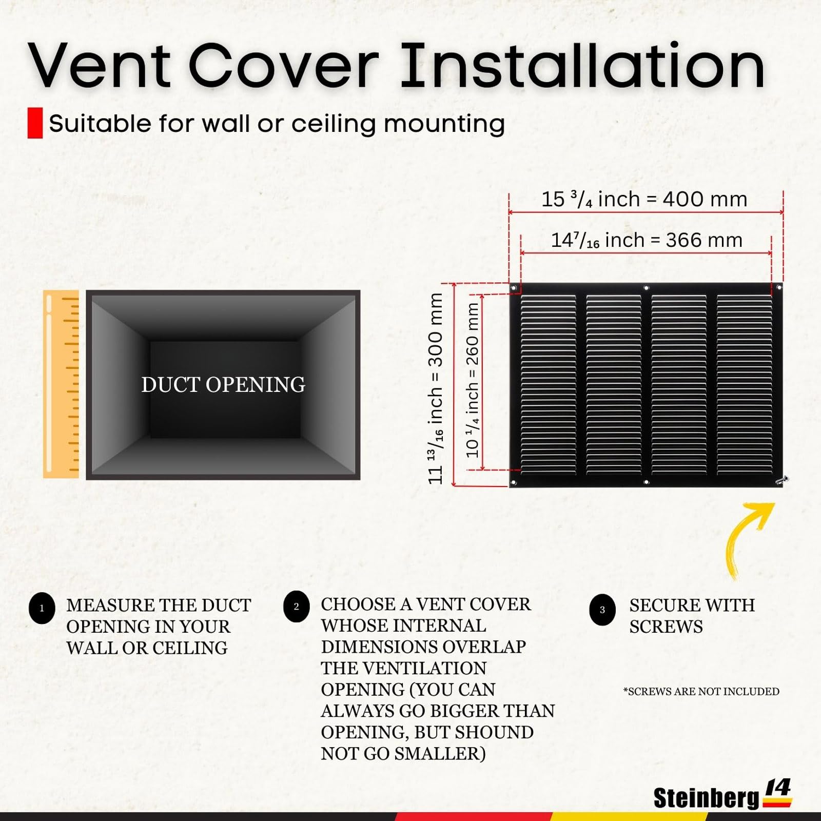 Fabriqué en tôle d'acier, tôle d'acier galvanisé ou aluminium. Systèmes de ventilation, de climatisation et de chauffage à air. Des matériaux de haute qualité et la phosphatation du zinc assurent l'intégrité du revêtement et une protection fiable contre la corrosion. Ce lot de 2 grilles d'aération intérieures en alliage d'aluminium est conçu pour améliorer la circulation de l'air dans divers espaces tels que les armoires... Grille d'aération en métal Zwart 300 x 300 mm - grille de fermeture avec moustiquaire pour l'air évacué et l'air soufflé. Grille de ventilation Grille... Ventilateur Metal Grille De Ventilation En Métal - GZ60 - Rf-t - Résistante Au Feu / Rectangulaire Grille Aération 300x300 Les finitions avec un revêtement en poudre colorée sont possibles., Fixation par vis. Grille de Ventilation extérieure Murale,Plat en métal avec Grille Montage au plafond ou sur le mur intérieur ou extérieur. Section de l'air : 0,0249 mm² , Forme : rectangulaire Disposition de la répartition correcte du flux d'air à l'intérieur.