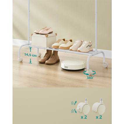 La tige haute et basse s'adapte aux vêtements de différentes longueurs et empêche les plis. Fonctionnalité améliorée : l'étagère inférieure offre un espace de rangement supplémentaire pour les chaussures et les boîtes de rangement. Portant Vêtements Sur Roulettes Portant à Vêtements Pour Suspendre Des Vêtements, Double Portant Double Tringle LES + PRODUITS Structure En Métal Robuste Double Tringle Droite 4 Roulettes Avec Freins 2 Étagères Inférieures Pratiques DESCRIPTION CARACTÉRISTIQUES Dimensions : L.120 x l.40 x H.146 cm Poids : 3.55kg Matériau : Métal Charge maximale : 40kg Couleurs disponibles : Noir, Blanc Contenu : 1*Portant à vêtements, 4*Roulettes, 1*Kit de montage, 1*Notice POURQUOI CHOISIR NOTRE PORTANT À VÊTEMENTS ROBUSTE ? Doté d'un revêtement anti-rouille, notre portant à vêtements en métal résistant assure une stabilité robuste au quotidien, tout en supportant jusqu'à 40 kg de vêtements. MWQ Portant à vêtements à double tringle, organiseur de vêtements à roulettes pour suspendre des vêtements, blanc Plus besoin de transporter des vêtements lourds. 2 étagères inférieures : Configuration à double niveau offrant un rangement organisé pour chaussures et affaires diverses. Portant a vetement avec roulettes, tringle réglable hauteur 90-160CM, penderie à vêtements... Generic Portant à Vêtements avec Roulettes, Tringle Extensible pour Charge Lourde, Porte-manteau, Rangement Vêtement, Capacité de Charge 90 kg, Montage Facile, Portable à prix pas cher | Maroc Robuste et stable : le design du cintre soudé assure la stabilité et empêche la flexion, offrant une solution de suspension fiable. Portant pour vêtements à roulettes, Tringle Double, Mobile, HxLxP : 162x80x51,5 cm, Garde-Robe... Deux étagères basses, dont l'une en grille aérée, maximisent l'espace vertical pour ranger chaussures ou accessoires en toute simplicité. D'un montage intuitif et rapide, notre porte-vêtements au design épuré s'intègre parfaitement dans tous les intérieurs, de la chambre au dressing en passant par l'entrée. Qualité supérieure : fabriqué en métal de haute qualité avec un revêtement chromé durable, offrant une protection contre l'eau, la rouille, la corrosion et les rayures.
