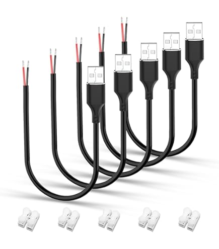 Spécifications : Marque : Joonnair Nom : 0,3M Câble de queue USB Matériel : Matériau PVC de haute qualité Couleur : noir Taille : 0,3M Fonction : Connexion électrique DIY Les forfaits incluent : 6 x 0,3M Câble de données d'alimentation Commentaires : Veuillez permettre une erreur de mesure de 1 à 2 mm en raison de la mesure manuelle. minidodoca Lot de 6 câbles en queue de cochon USB 2.0 mâle à 2 broches, 3 A, 3 V, 5 V, 9 V, 12 V, 24 V, USB de type A, 2 Fiche 2 broches fil nu, avec câble en cuivre pur, bonne conductivité, avec fonction de blindage des interférences, tout en maximisant la protection RF contre les interférences électromagnétiques, tout en réduisant la perte de signal transmis Cable Mini Usb 6 Pièces Queue De Cochon USB 22AWG,câble USB 2.0 à 2 Fils Cable Manette Ps5 Polyvalent pour Tous Types de Projets :Ce Câble de données d'alimentation est compatible avec de nombreux appareils USB, parfait pour les réparations, la création de nouveaux câblages, ou les travaux de remplacement dans les environnements professionnels ou à domicile 6 Pièces Queue de cochon USB 22AWG, câble USB 2.0 à 2 fils, extrémité ouverte à fil nu à 2 broches, câble USB mâle de 0,3 mètre, câble d'alimentation à prise... Câble 22AWG pour Une Performance Optimale :Grâce au 22AWG câble USB mâle, ce câble est capable de supporter des charges plus élevées et d'offrir une alimentation fiable à vos appareils avec une excellente conductivité électrique Il est parfait pour les travaux nécessitant une connexion USB standard Conception de Câble Nu USB 2., 0 :Le Câble nu USB 2., 0 permet une flexibilité d’installation pour les projets de câblage sur mesure ou de remplacement. Il est parfait pour les travaux n cessitant une connexion USB standard, Polyvalent pour Tous Types de Projets Ce C ble de donn es d'alimentation est compatible avec de nombreux appareils USB, parfait pour les r parations, la cr ation de nouveaux c blages, ou les travaux de remplacement dans les environnements professionnels ou domicile