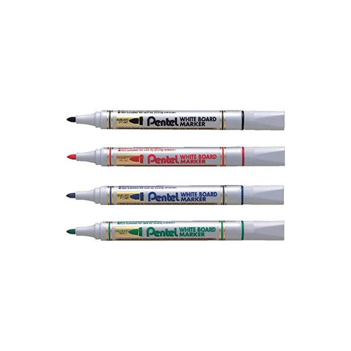 Capuchon carré empêchant le marqueur de rouler. Capuchon carré qui empêche le marqueur de rouler Pochette 4 pièces couleurs assorties (1 noir, 1 rouge, 1 bleu, 1 vert). Marqueur Indélébile Blanc Marqueur Pour Tableaux Blancs Pentel MW85 Pointe Ogive Rouge Feutre Weleda Pochette de 4 marqueurs effaçables pour tableaux blancs Mw85 Pointe conique moyenne 4,4mm Couleurs vives et lumineuses Capuchon rectangulaire anti-roulement Pentel MW85 Lot de 4 marqueurs pour tableau blanc à pointe conique, noir/bleu/rouge/vert : : Fournitures de bureauDemandez le retour d'un produit jusqu'à 14 jours après sa réception, sans motif, pour obtenir un remboursement complet (prix et frais de livraison) au titre du droit légal de rétractation. permet en plus les retours jusqu'au 30ème jour et le... Pointe de 4,4 mm, trait de 1,9 mm. Marqueurs Effaçables à Sec Pentel Marqueurs Effaçables Pentel Maxiflo - Lot De 12 Pointe Moyenne 1.6mm, Encre Noire Pour Tableaux Blancs, Système De Gamme Amiko : prix amiko, qualité Pentel , Couleurs brillantes Ne laisse pas de traces sur le tableau Sans xylène et toluène