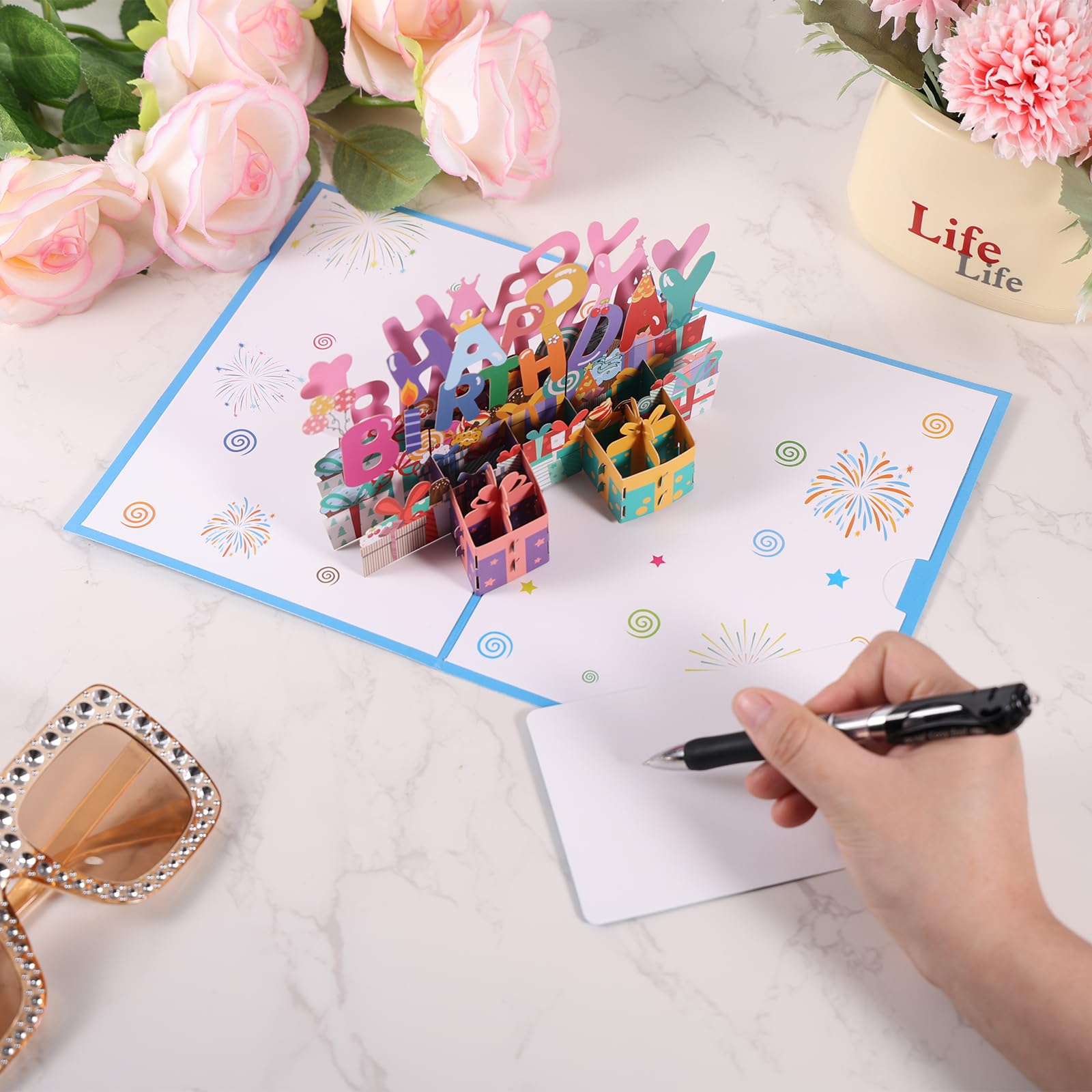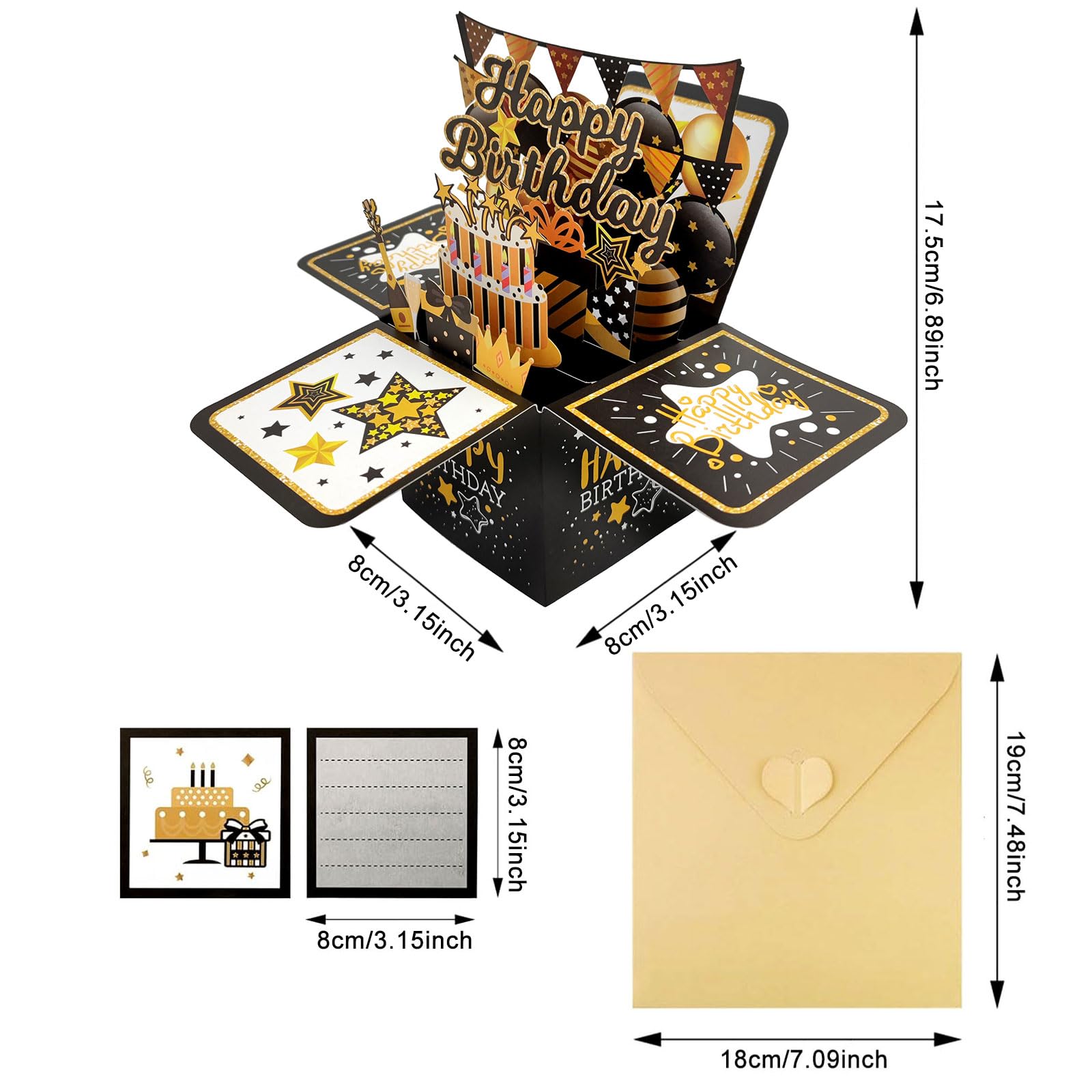 Excellente qualité: fabriqué à partir de papier cartonné épais et durable qui est lisse au toucher, résistant aux déchirures et imprimé avec des graphismes brillants et clairs pour un look et une sensation premium. Design 3D accrocheur: dispose d'une conception de boîte pop-up amusante avec des éléments d'anniversaire vibrants comme le gâteau, les feux d'artifice, la crème glacée et la boîte cadeau.Une fois ouverte, une garement joyeux "Happy Birthday" apparaît en 3D pour une célébration joyeuse Cartes d'anniversaire pop-up 3D, faites à la main, cartes d Conception pop-up 3D vibrante: s'ouvre pour révéler un message festif “Happy Birthday” aux couleurs vives avec des éléments 3D amusants comme des coffrets cadeaux, des ballons, des feux d'artifice et des accents de fête qui ajoutent instantanément la joie à toute célébration. Joyeux Anniversaire Maman Lasuroa Carte D'anniversaire Pop-up En 3D Avec Enveloppe Pour Femme Carte Pop Up Saint Valentin Surprenez-les avec cette carte pop-up Happy Birthday de HAPPY GIFTERS, avec un design passionnant de cartes pop-up 3D et un thème de fête d'anniversaire... En raison des différences entre les écrans, une légère différence de couleur peut exister. Contenu du paquet: comprend 1 carte d'anniversaire pop-up colorée (taille dépliée 30x20x9cm), 1 enveloppe correspondante (21x16cm) et 1 petite carte de voeux (12,5x8,5 cm) pour rédiger votre message personnel.