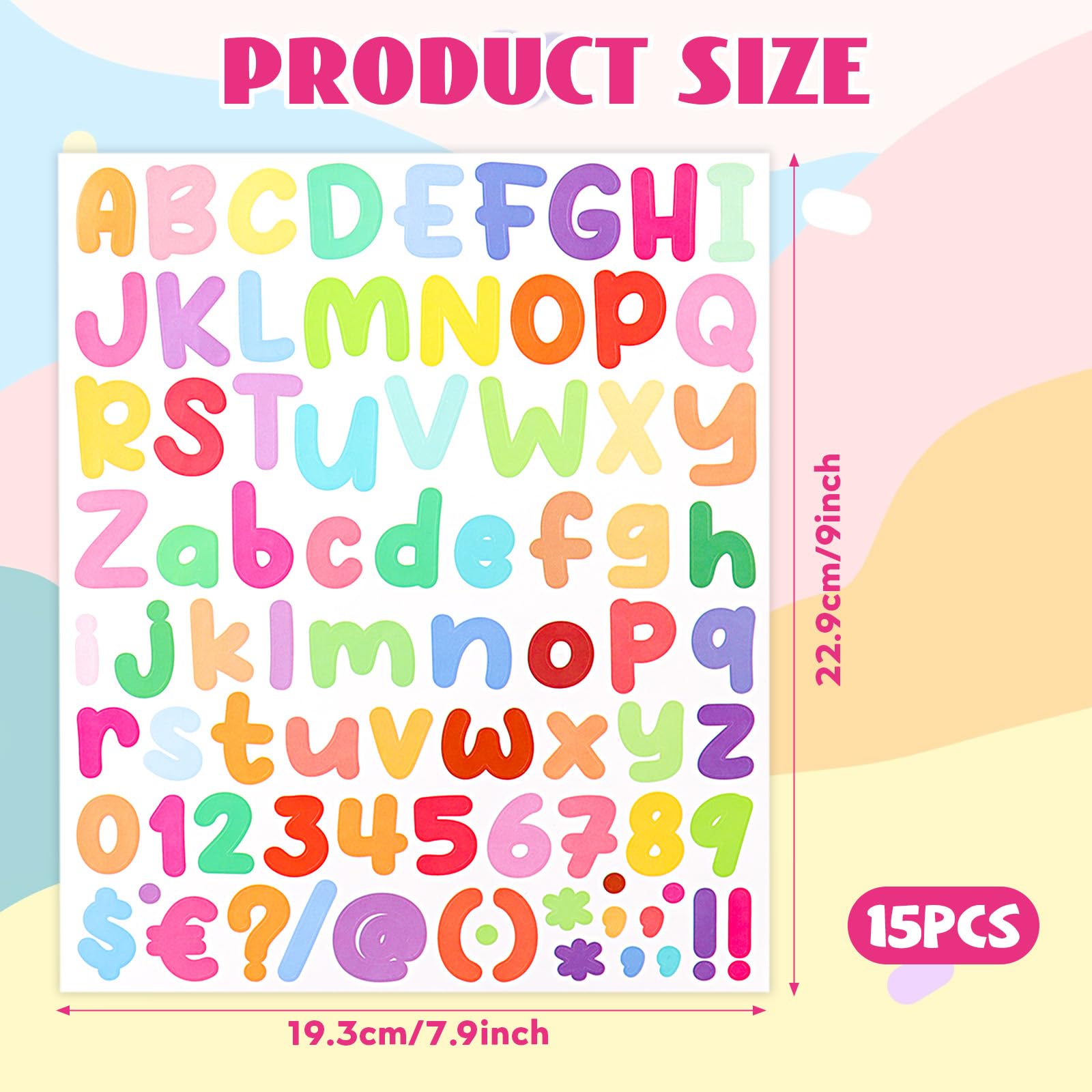 Livre Autocollant Enfant GETRICH 12 Feuilles 600 Pièces Lettres Autocollantes Et Chiffre Autocollant, 2 Pouce Lettre Autocollantes Coloré Vinyle Lettres Adhésives Stickers Lettres Alphabet Pour Cartes De Vœux DIY Scrapbooking Autocollant Lettre Dimensions du produit : 17,2 x 12,8 cm., Caractéristiques : 1., Les lettres de scrapbooking sont fabriquées en vinyle de qualité, imperméable, avec un adhésif puissant, ne tombe pas facilement, dure longtemps., 2., Ces autocollants alphabet peuvent être collés sur la plupart des surfaces tant qu'ils sont secs, propres, lisses, tels que le papier, le bois, le métal, le carrelage, le verre, etc., 3., Vous pouvez les utiliser pour décorer vos boîtes aux lettres, fenêtres, portes, voitures, camions, scrapbooking, album, cadre photo, bouteille d'eau, boîte à déjeuner, etc. 【Contenu de l'emballage】Vous recevrez 15 feuilles d'autocollants alphabet avec 2280 caractères de 5 styles. Autocollant autocollant lettre majuscule colorée – 10 feuilles d'autocollants pour scrapbooking, lettres adhésives pour sacs, travaux manuels, affiches, fenêtres, boîtes aux lettres, bricolage Découvrez notre vaste gamme de 15 feuilles 2280 pièces Ensemble d'autocollants alphabétiques de 0,5 pouce, petits autocollants décoratifs Gukka numériques pour journal, manchon de carte décoratif coloré, autocollants d'alphabet artistique pour fournitures de DIY journal, décorations d'artisanat DIY, décoration d'album photo et de scrapbooking (avec ajout d'autocollants de lettres... 【Temps de Bricolage Amusant】Ces autocollants sont conçus avec des lettres, des chiffres et des symboles de ponctuation, vous pouvez les choisir et les personnaliser selon vos propres souhaits et créer des caractères ou des mots significatifs pour montrer votre goût et votre tempérament. Des utilisations infinies attendent que vous découvriez. 【Nombreuses Utilisations】Les autocollants alphanumériques peuvent décorer vos boîtes aux lettres, fenêtres, portes, voitures, albums, bouteilles, boîtes à déjeuner et plus encore. Aucun autre outil n'est nécessaire, très pratique. Chaque autocollants mesure environ 17,2 x 12,8 cm, et chaque lettre mesure environ 1,3 cm de haut. Toute l'inspiration mode et les dernières tendances sont en ligne sur SHEIN. Avertissement De Sûreté Tenir à l'écart des flammes