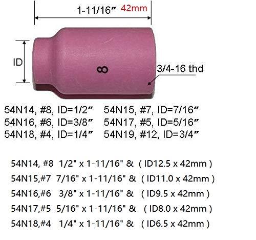 RIVERWELD TIG Gaz Lentille Alumine Buse Céramique Tig Gas Lens Aluminia Buse Ceramic Cup Long Assorted Size Kit pour SR WP 9 20 25 TIG Soudage Torche Buse gas lens n°6 en alumine, compatible avec les torches WP-9, WP-20 et WP-25. Conçue pour être utilisée avec des diffuseurs gas lens, elle améliore la... RIVERWELD - Lentilles De Gaz TIG En Alumine - Buse KIT TIG TORCHE de soudage TIG Tronquée Buse d'alumine Accessoires... Travaillez avec 45V41 45V42 45V43 45V44 45V45 Collet de lecs de gas , Réf n ° 53N60L D9., 5 x 35 mm , Hauteur: 35 mm , Pack de 10