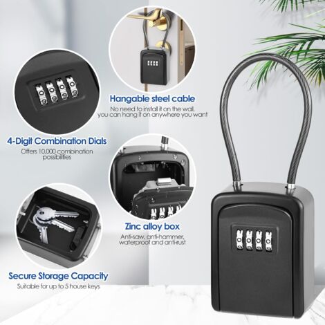 Combinaison à 3 chiffres de verrouillage cadenas et une finition nickel brossé. Housse noire à anse protège des rayures Extrêmement pratique ? Stocker et verrouillez plusieurs articles. Cadenas à combinaison 3 chiffres distincts pour et compartiment pour clés à combinaison 4 chiffres · Grand intérieur peut contenir plusieurs clés · Housse noire à... Réglez La Molette De Verrouillage À Combinaison Safe Le Badge... Porte Clef Voiture Boîte De Rangement De Clé, Boîte De Rangement De Clé Extérieure à 4 Chiffres Porte-clé De Boîte Boîte à Clés Coffre-fort verrous 5500 dispose d'un grand corps ; capable de contenir plusieurs clés et/ou les cartes. Boite rangement fermant à clé au meilleur prix Code à 4 chiffres vous donne plus d'options de combinaison numérique à 4 chiffres combinaison pour le couvercle est prédéfini à 0–0-0–0., Définissez votre propre combinaison. pendaison clé boîte de rangement