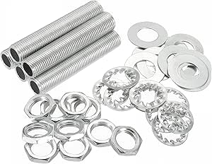 Caractéristiques: 1., Le matériau offre une bonne résistance à la rouille et à la corrosion, ce qui prolonge sa durée de vie., 2., Le tige filetée creuse de lampe est doté d'un centre creux pour permettre le passage du cordon ou du fil de la lampe., 3., Le tige filetée creuse de lampe est entièrement fileté et se visse facilement dans des écrous filetés ou des trous taraudés., 4., Largement utilisé pour la réparation de luminaires ou de lampes à la maison, au bureau ou pour d'autres projets de bricolage. [Facile Installation] - Filetage entière pour le mamelon du tuyau de la lampe, facile vissage dans des trous taraudés ou des écrous filetés, facile à visser dans des écrous filetés ou des trous taraudés. [Matériel] - Le tige filetée est parfait pour prolonger la durée de vie, le matériau zingué a une bonne résistance à la corrosion et à la rouille. Sourcing Map Tige Filetée Creuse M6 Tube Filete Filetage 25mm sourcing map Tige Filetée Creuse M6 Tube Filete Filetage 20mm Longueur Supérficiel Lampe Tuyau Mamelon pour Réparation Luminaire Lampe Lustre Filetage M6, longueur 30mm, avec un pas de 1mm et un diamètre intérieur de 3,2mm pour faire passer les câbles. En métal zingué argenté, résistant à la corrosion... Matériau Le matériau zingué a une bonne dureté et une bonne résistance à la corrosion, bon à utiliser dans les zones sèches. Ce kit peut vous faire gagner du temps pour rechercher les crous, les tuyaux et les rondelles un par un [Applications] - Amplement employé pour les lumières ou la réparation des lampes de la maison et du bureau, le montage de lampe, pour fixer des clignotants moto ou d'autres projets de lampes de bricolage. [Centre creux] - Ce tige de lampe à centre creux permet le passage du cordon de lampe ou du ligne électrique. Mamelon Luminaire Lustre Sourcing Map Tige Filetée Creuse