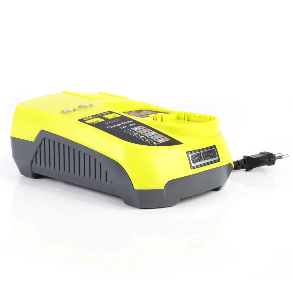 Caractéristiques : Tension d'entrée : AC 100 V-240 V. Chargeur rapide : équipé d'une technologie de charge avancée, ce chargeur P107 prend en charge la charge rapide de la batterie 6,0 Ah 18 V en environ 2 heures ou moins et réduit les temps d'arrêt. 【Spécification】Tension d'entrée : 100 V-240 V, sortie 18 V 2 A pour batterie Li-ion, 1,5 A pour 12 V-18 V NiCD et NiMH. Indicateur LED : le double chargeur pour batterie Ryobi 18 V dispose de voyants LED qui indiquent l'état de charge, vous permettant de surveiller la progression et de savoir quand votre batterie est complètement chargée Chargeur P117 compatible avec la batterie au lithium Ryobi 12V 14.4V... Chargeur Ryobi 18v CHARGEUR 12V-18V P117 Pour Batterie Ryobi ONE P108 P100 P104 Lithium Chargeur Ryobi 18v Oneplus Tension de sortie : 12 V-18 V ; Li-ion 2 A ; Ni-CD/Ni-MH 1,5 A. Chargeur De Batterie Energup P117 Chargeur De Rechange Pour Ryobi Chargeur 18V Chargeur Makita Indicateur LED : le chargeur pour batterie Ryobi 18 V dispose de voyants LED qui indiquent l'état de charge, vous permettant de surveiller la progression et de savoir quand votre batterie est complètement chargée. Grande compatibilité : ce chargeur P117 à double chimie est compatible avec les batteries Ryobi 18 V ONE+ P102 P103 P105 P107 P108 P189 P190 P191 P197 1400671 HP PBP002 PBP005., (charge également la batterie NiCd NiMH 12 V 14,4 V) Protection intelligente : les mécanismes de protection intégrés empêchent la surcharge, la surchauffe et les courts-circuits, assurant une charge sûre et fiable de vos batteries.