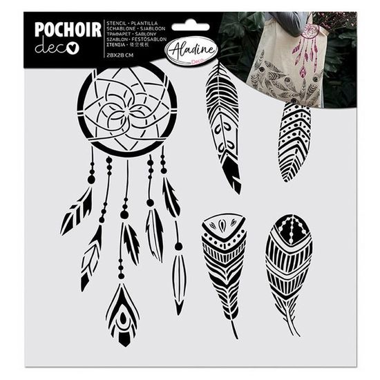 Marque : MegaCrea DIYRéférence Interne : 33161Matériau : PlastiqueConditionnement : 1 pochoirExpédié de France par notre entrepôt Lyonnais Rayher 45091000 Pochoir Attrape-rêves A4 – Pochoir en Plastique Le chouchou de ma boutque /fr/lstng/571636829... Poster Papier Attrape Rêves - Dimensions 21 X 30 Cm - Papier Brillant... Cet outil est parfait pour ajouter une touche légère et aérienne à vos projets de loisirs créatifs. 🪶 Questions fréquentes 1.Ce pochoir plume est-il adapté à une utilisation sur tissu ? Oui, il est parfait pour personnaliser des coussins, sacs, vêtements ou rideaux. 2.Peut-on l’utiliser avec de la peinture textile ou en spray ? Oui, il est compatible avec la peinture textile, acrylique, en spray, au pinceau ou au rouleau. 3.L’adhésif repositionnable fonctionne-t-il sur des surfaces irrégulières ? Oui, il adhère bien aux surfaces lisses ou légèrement texturées sans laisser de traces. 4.Est-il facile à nettoyer ? Oui, un simple rinçage à l’eau tiède avec un peu de savon suffit. 5.Combien de fois peut-on le réutiliser ? Il peut être réutilisé plusieurs fois s’il est bien nettoyé et stocké à plat. Ce pochoir adhésif repositionnable au motif de plumes est idéal pour des créations délicates et raffinées. Pochoir Pâte Polymère Attrape-rêves 11,4 X 15,3 Cm
