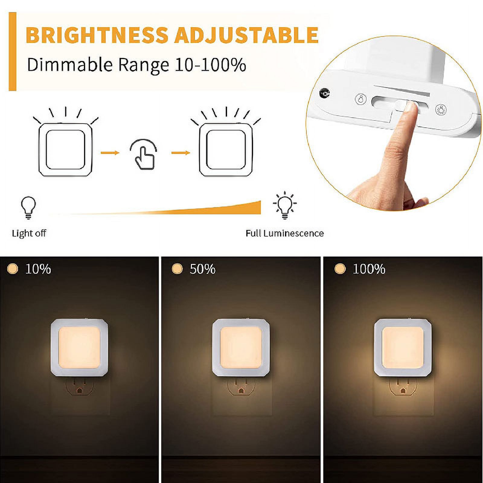 Talwei Veilleuse avec capteur crépusculaire, 2 pièces de luminosité adaptative avec visière. Capteur crépusculaire intelligent : facilitez la vie : avec le capteur de lumière intégré, notre veilleuse LED intelligente détecte exactement la lumière dans votre chambre. Conception du couvercle rotatif: vous pouvez régler la luminosité souhaitée en tournant le couvercle de la lampe, même les personnes âgées et les enfants peuvent le régler eux-mêmes Les veilleuses LED offrent une lumière blanche chaude, douce et sans éblouissement, idéale pour protéger vos yeux et éviter la fatigue. Elles éclairent efficacement les chemins dans l'obscurité, garantissant sécurité et créant une atmosphère apaisante pour s'endormir. Type de produit : Veilleuse LED. Consommation : 0,3 W Lot De 2 Lampes De Nuit Avec Capteur Crépusculaire,Luminosité Adaptative Avec Visière,Idéal Pour Chambre D'Enfant,Escalier,Chambre À Coucher,Cuisine,Lumière... YUNLEX 2 Pcs Veilleuse LED Automatique, Lampe De Nuit à Capteur Crépusculaire, 3 Niveaux De Luminosité Dimmmable Veilleuse Enfant Avec Prise, Pour Couloir, Cuisine, Salle De Bains, Blanc Ajustez automatiquement la lumière : lorsque l'environnement extérieur devient plus lumineux, la lumière s'affaiblit, et lorsque l'environnement extérieur devient plus sombre, la lumière devient de plus en plus forte Applique Murale Rechargeable Lot De 2 Appliques Murales LED 6 W à Piles Avec Détecteur De Mouvement, Veilleuse, Rechargeable Lumiere Detecteur De Mouvement Interieur Vous n'avez jamais besoin de l'allumer ou de l'éteindre manuellement., » Fiable, largement utilisé : boîtier ignifuge ABS de qualité supérieure et conception de protection contre les surintensités, notre petite veilleuse garantit la sécurité lors d'une utilisation à long terme. Particulièrement adapté aux enfants, aux personnes âgées et aux autres personnes sensibles à la lumière