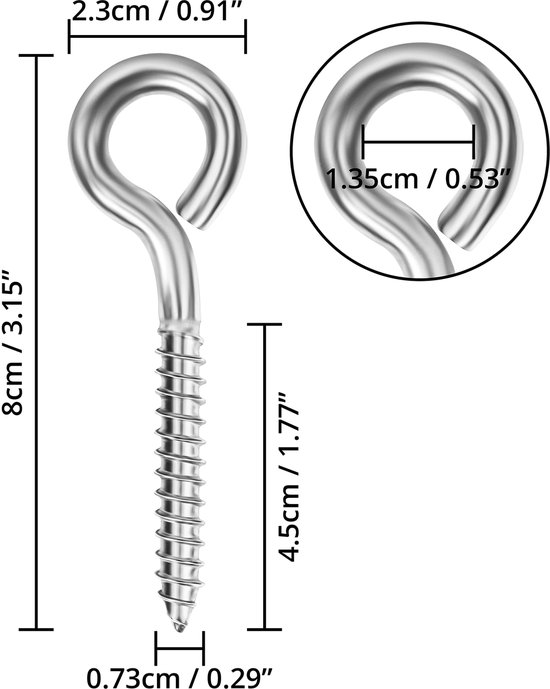Crochets de plafond à vis en acier inoxydable 304 adaptés pour une utilisation en extérieur et en intérieur. Caractéristiques : petits crochets à vis de plafond, ne tache pas et ne se corrode pas, utilisation pour la marine, la salle de bain, la cuisine pour accrocher et les applications extérieures, métal résistant à la rouille. Ces crochets robustes ne rouillent pas, ne se corrodent pas, parfaits pour l'extérieur. Crochet à Visser 4 Pièces Plaque Oeillet Acier Inoxydable,Plaque à Oeillet Pontet Fore U, Crochet A Visser ENSEMBLE DE 100 crochets de draperie blancs faciles à installer durables et pra - EUR 3,50.À VENDRE! 285681754259 30 pièces crochets à visser inox (304) 3 tailles 40 50 65 crochets à vis crochets robustes... Utilisation intérieure et extérieure : crochets à vis en acier inoxydable 304, ils sont très polyvalents, pour accrocher des tasses à café, organiser votre garde-robe, ceintures, chapeaux, écharpes, colliers de bijoux, ustensiles de cuisine, serviettes, rideaux, balais, plantes, clés, colliers, carillons, cage à oiseaux et plus encore. Les grands crochets à vis avec extrémités effilées permettent une fixation facile sur les murs, les plafonds ou les planches en bois. Garosa Lot de 100 Crochets... Utilisez d'abord un trou pilote et vissez à la main ou utilisez un œillet de vis dans votre perceuse. Paniers de fleurs suspendus, carillons et lanternes, lumières de Noël, tentes de camping, etc. Boite de 100 crochets à vis 21x80mm