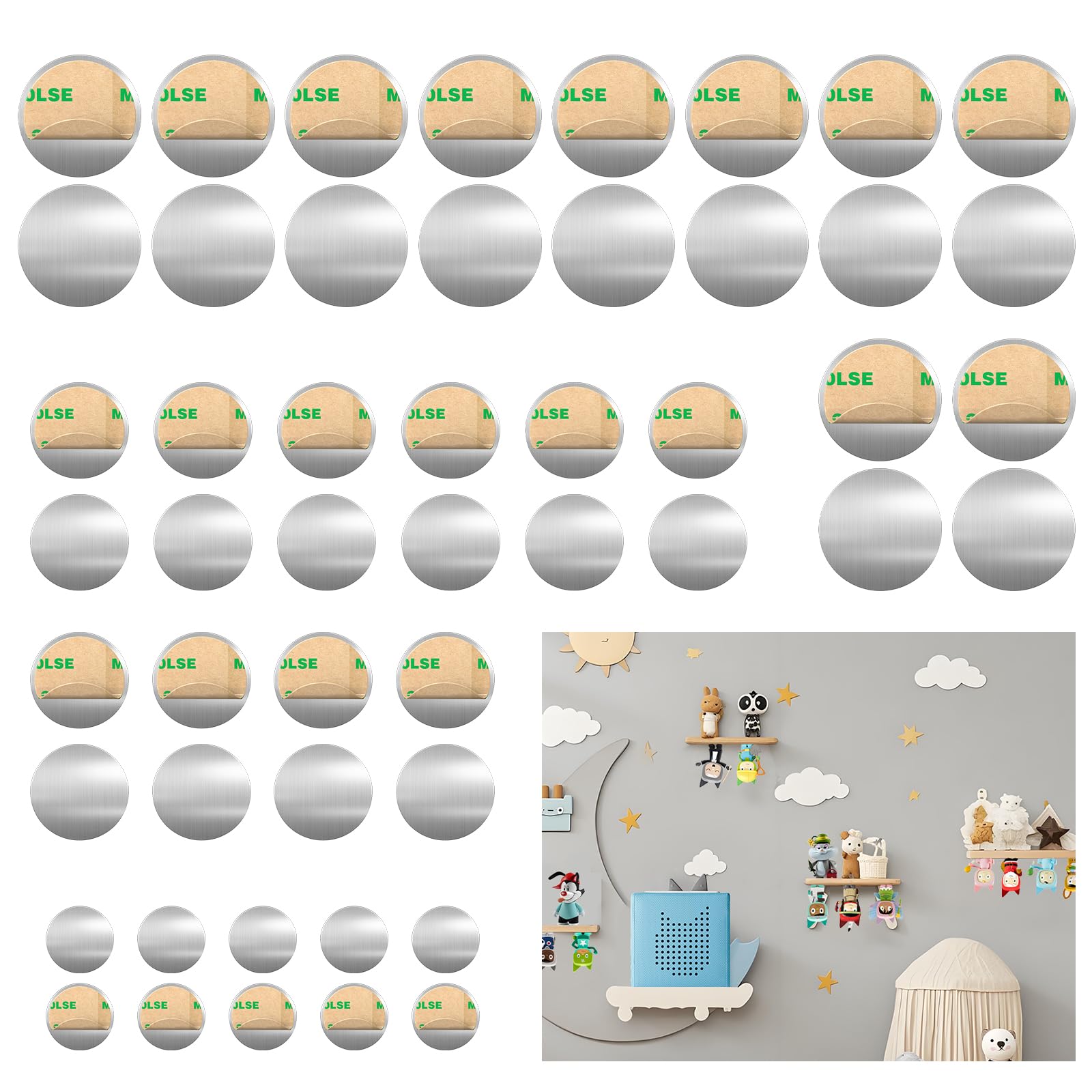 Que ce soit pour ranger les figurines Tonie dans la chambre d'enfant, pour organiser de petits objets à la maison ou comme solution intelligente pour le bureau, cet ensemble facilite votre quotidien. Grâce à sa forte force magnétique et à son dos autocollant, les plaques peuvent être installées rapidement, sans outil et sans dommage, tandis que le matériau en acier inoxydable robuste garantit durabilité et aspect moderne. Multifonction et pratique : que ce soit pour les figurines Tonie, l'organisation ménagère, les fournitures de bureau ou les projets de bricolage, cet ensemble offre d'innombrables possibilités d'utilisation. Lot De 4 Plaques Métalliques Autocollantes Pour Support Téléphone Ce lot de plaques métalliques autocollantes offre la combinaison parfaite de polyvalence, de fonctionnalité et de design. Pas de perçage, pas de tracas, il suffit de les coller et de commencer à utiliser. Différentes tailles : ce lot contient 100 plaques métalliques autocollantes en trois tailles différentes (20 pièces de 15 mm, 40 pièces de 20 mm, 40 pièces de 30 mm), qui sont idéales pour les objets de différentes tailles. 100 disques mu00e9talliques / plaques mu00e9talliques 16 mm - autocollantes Multifonction : ce lot de plaques... Matériau de qualité supérieure et durable : acier inoxydable robuste, résistant à la corrosion et à l'usure - Idéal pour une utilisation à long terme. Doux pour les murs et les surfaces. Forte force magnétique : les matériaux magnétiques de qualité supérieure garantissent un maintien sûr des figurines Tonie, des clés, des documents et plus encore. Économique et polyvalent : un accessoire indispensable pour votre quotidien. Figurine Tonie Super Lapin Simon - TONIES® - Figurine Audio pour... AZWOOD Plaquettes Métalliques Pour Figurines Tonie Avec Colle, 20 Bases Avec cet ensemble, vos enfants peuvent créer leur propre étagère à figurines Tonie tout en cultivant leur créativité et leurs compétences artisanales de manière ludique, un ajout pratique et décoratif à toute maison.