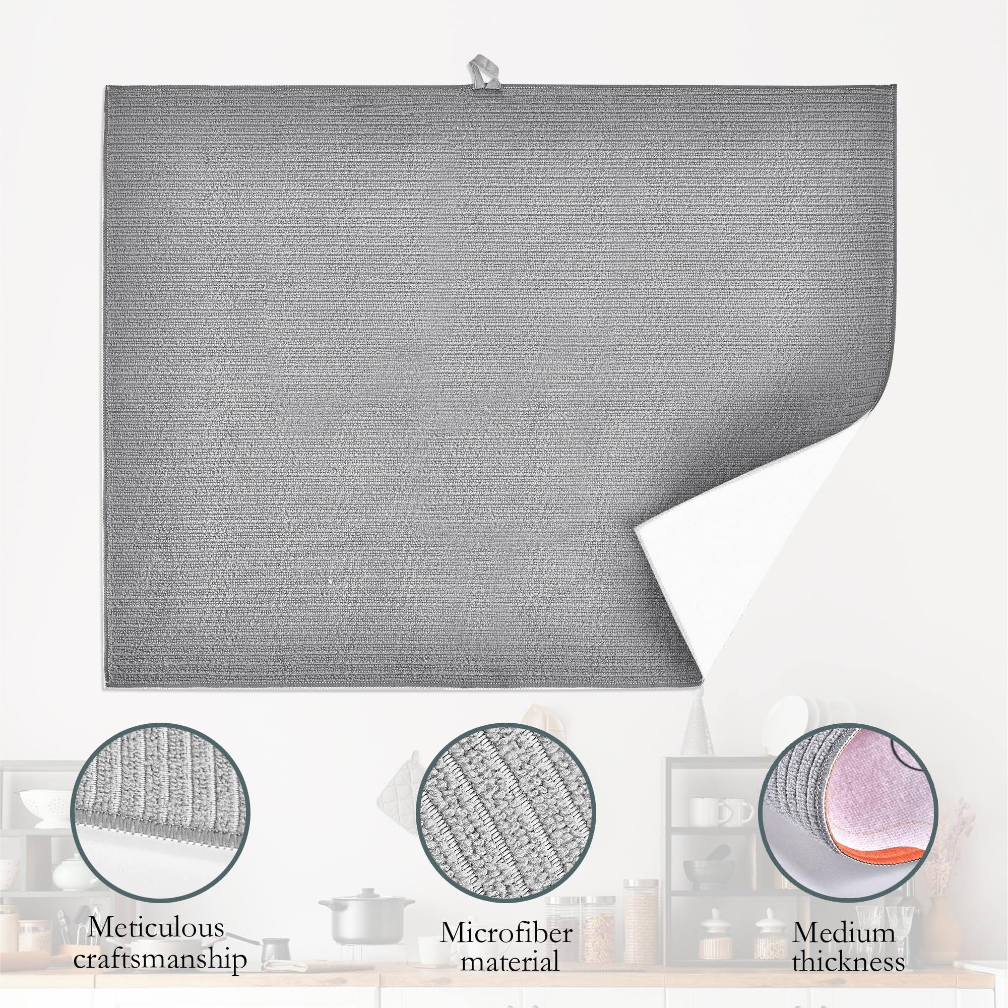 La microfibre est naturellement durable, se nettoie facilement, et est facile à nettoyer. Fabriqué en microfibre, tapis de séchage ultra absorbant et à séchage rapide. Ces tapis sont réversibles, avec un matériau en microfibre des deux côtés pour une absorption optimale de l'eau et une adaptation à différents scénarios. Il peut contenir beaucoup de vos plats et assiettes, et il est également parfait pour contenir vos grandes casseroles et poêles. Un excellent cadeau : grâce à son design élégant et à sa forte absorption d'eau, ce tapis de séchage peut être un excellent cadeau pour votre famille et vos amis, pendaison de crémaillère, mariages, Noël, fête des mères, Thanksgiving, anniversaires et autres occasions spéciales. En résumé, les tapis de séchage UIUPRO et les tapis de machine à café offrent une solution idéale pour maintenir un environnement de cuisine propre et protégé. Fabriqué en microfibre, tapis de séchage ultra absorbant et à séchage rapide. Il peut contenir beaucoup de vos plats et assiettes, et il est également parfait pour contenir vos grandes casseroles et poêles. Fabriqué en microfibre, tapis de séchage ultra absorbant et...Les tapis de séchage à vaisselle et les tapis de machine à... Les tapis de séchage à vaisselle et les tapis de machine à café sont des accessoires de cuisine essentiels pour protéger les dessus de table des effets néfastes des casseroles chaudes et des machines à café. Dimensions : 46 x 61 cm, tapis de séchage en polyester de haute qualité. Notre tapis de séchage aspirera tous les restes d'humidité de vos casseroles, poêles et plats, et laissera le dessous à la fois sec. UIUPRO Tapis de séchage à vaisselle pour comptoir de Le tapis de séchage avec boucle de suspension, peut être accroché au mur de la cuisine. Tapis De Séchage Pour Comptoir De Cuisine - Tapis De Séchage Lorsque vous n'en avez pas besoin, vous pouvez simplement le plier en un petit morceau pour le ranger. À utiliser seul ou à associer avec un égouttoir à vaisselle. En outre, la corde de suspension pratique des tapis permet un rangement facile, soit en les enroulant ou en les accrochant sur des crochets de cuisine. TAILLE PARFAITE : Ce tapis de séchage de vaisselle mesure 11,8x15,7 pouces/30x40 cm. Il s'adapte à la plupart des comptoirs de cuisine et est suffisamment grand pour récupérer les gouttes sous l'égouttoir ou placer des casseroles, poêles, couverts et verres directement sur le tapis.Antidérapant et forte absorption d'eau: le tapis de vaisselle est constitué de diatomite naturelle, qui a... Les alternatives traditionnelles comme les journaux ou les torchons sont insuffisantes, conduisant souvent à des taches d'eau et à la croissance potentielle de moisissures.