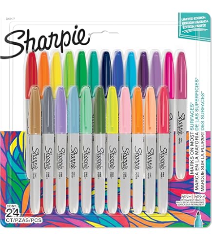 Encre permanente à base d'alcool pour toute surface y compris CD et DVD. Avec capuche Système de sécurité exclusif qui empêche le séchage., Pointe 1,0 mm. Assortiment de couleurs : 4 limes, 4 orange, 4 limes., Pointe 1,0 mm , Couleurs assorties Marqueurs permanents Sharpie® indélébiles, pointe fine, encre orange permanent, Boîte de 12. Le marqueur Sharpie® peut être utilisé sur le plastique, le verre, le bois, le métal et le textile. Couleur exceptionnellement intense, pour des lignes épaisses. Encre à séchage rapide qui résiste aux bavures, à la décoloration et à l'eau Ensemble de Marqueurs Sharpie 24 Pièces Permanent Multicouleur 0,9 mm... Ultra Fine Point Markers Promo 12 Marqueurs Sharpie Fine Pastel Color Sharpie Chez Intermarché Sharpie Ink Markers Set de 8 marqueurs Shake Medium - 4 mm - Activités & Loisirs Créatifs