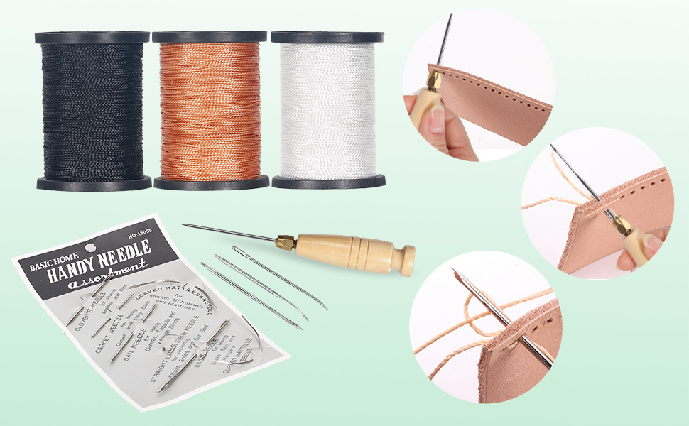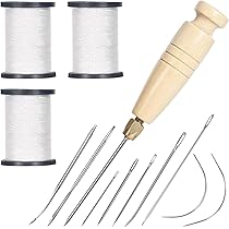 La longueur est de 8,8 cm, 7,5 cm, 6,7 cm, 6 cm, 4 cm. Aiguilles à coudre robustes : 5 aiguilles droites et 2 aiguilles incurvées. Kit de couture,Type 7--Kit De Couture Du Cuir Avec Fil Ciré, Poinçon... Les fils sont fabriqués en fil de nylon épais et résistant, l'aiguille de rembourrage est fabriquée en acier inoxydable, la poignée de l'alène de couture est fabriquée en bois pour une bonne tenue. Chaque bobine mesure 80 m de long. Le kit de fil à coudre est idéal pour coudre des sacs en cuir, des portefeuilles, des chaussures, un canapé, une tente, etc. Kit de couture robuste : les fournitures de couture comprennent 3 bobines de fil solide. Kit De Couture Cuir - 32 Pièces : Aiguilles, Fil Ciré, Mètre L'outil de couture vous aide à percer ou à agrandir des trous, rend la couture plus rapide et facile. Large gamme d'applications : le kit de fil à coudre et d'aiguilles pour tissus d'ameublement a une large application à la maison et à l'extérieur. Aiguilles à coudre à la main robustes : les aiguilles sont fabriquées en métal et les 7 aiguilles sont épaisses et solides. Bobine De Fil Ciré En Nylon Pour La Couture, Chaque Kit De Fil De 80 Verges D’epaisseur Pour Adulte Comprend Des Poincons Et Des Aiguilles A Coudre Pour La Couture A La Main Bobine De Fil Pour Couture Kit de couture de 3 bobines de fil en nylon, 80 mètres chacune, aiguilles robustes (5 droites, 2 incurvées), poinçon à coudre, idéal pour le rembourrage... Les 3 aiguilles mesurent 7,9 cm de long, la longueur totale avec manche en bois est d'environ 16,8 cm. L'outil de couture à gratter est livré avec 3 grandes aiguilles pour différents besoins.
