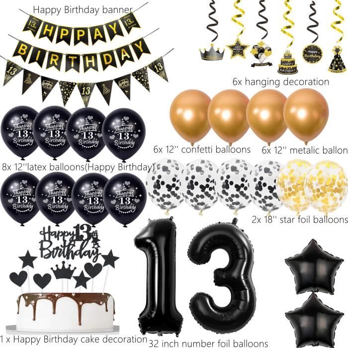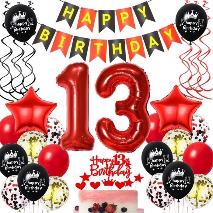 Set de décoration d'anniversaire 13:1 jeu de 32 pouces de ballons en plastique numéro 13, 1 jeu de bannières Joyeux anniversaire, 1 jeu de bannières officielles pour adolescents, 20x 12 pouces de ballons en latex(ballons Joyeux anniversaire 13 et ballons confettis), 2x 18 pouces de ballons en plastique en forme d'étoile, 1 jeu de toppers officiels de décoration de gâteau pour adolescents, 1 pcs de rubans de ballons. que vous utilisez de l'air et que vous gonflez les ballons en plastique à 80%-90%, sinon les ballons ont tendance à exploser ! Un service client de qualité : Si vous avez des problèmes avec nos 13 kits de décoration d'anniversaire, veuillez nous contacter à temps. Décorations officielles du 13e anniversaire pour adolescent Peut être réutilisé de nombreuses fois à différentes fêtes Économisez beaucoup de frais inutiles. Jeu Ado 13 Ans Torstenko Ballon 13e Anniversaire Décoration Garçon Fille Or Blanc Déco Feuille D'Or 13 Ans Femme Boy Joyeux Deco Ado Vous pouvez facilement décorer une fête d'anniversaire inoubliable à l'extérieur ou dans les chambres. Ballons de haute qualité:Décoration d'anniversaire En papier d'aluminium de haute qualité Et latex, Non-toxicité Et innocuité, Épais, Durable. Jeunesse une fête d'anniversaire unique et inoubliable. Décorations officielles du 13e anniversaire pour adolescent fille garçon, bannière Happy Birthday, numéro 13, ballons en aluminium, ballons officiels pour...