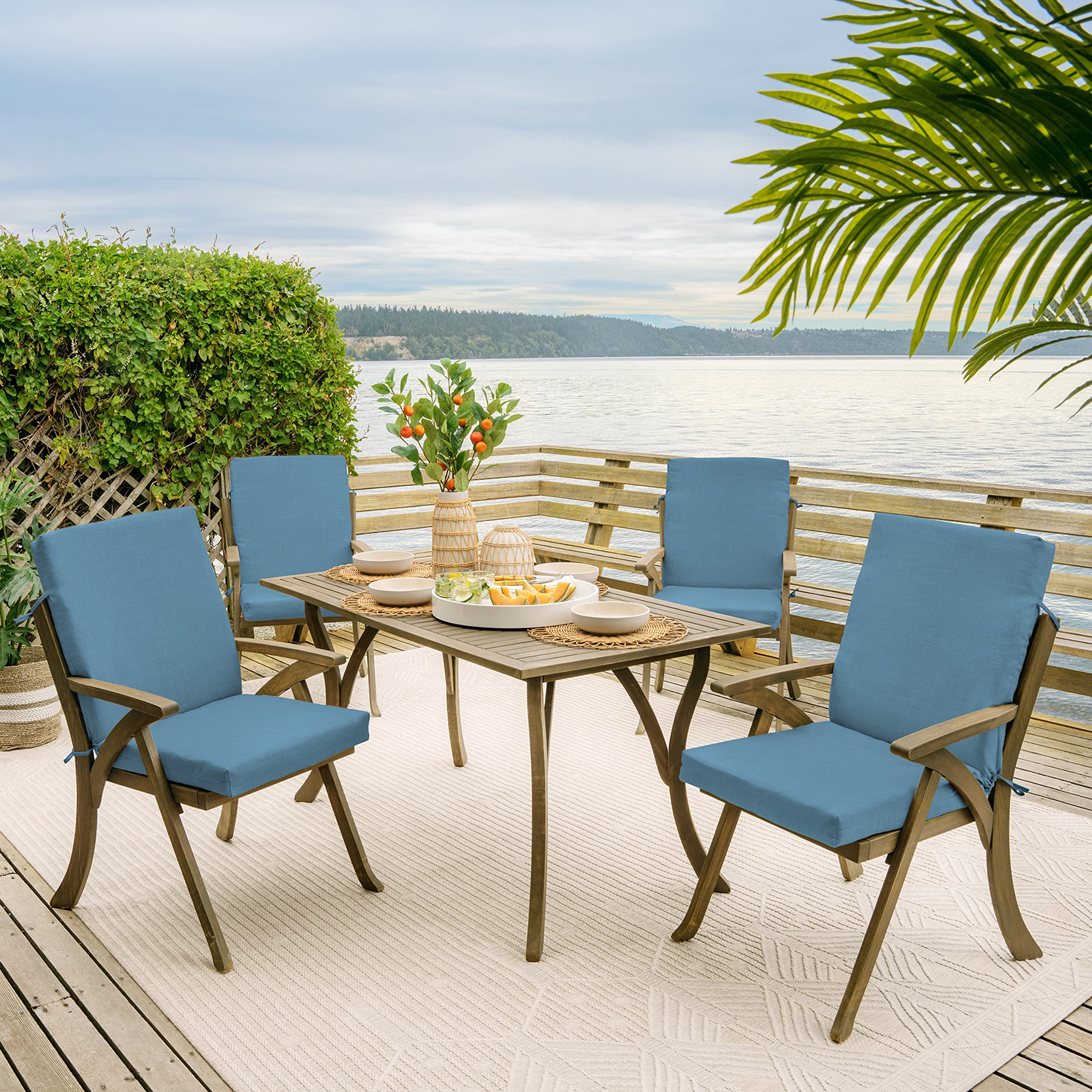 Créez un coussin confortable qui est respectueux de l'environnement et sans danger pour la peau pour votre famille. Quatre ensembles d'attaches maintiennent votre coussin fermement en place Lot de 2 · Dimensions : 50,8 x 111,8 x 8,9 cm (l x H x P) (le coussin de siège mesure 50,8 cm de large x 50,8 cm de long et le dossier est de 50,8 cm de large x... Rempli de fibres de polyester partiellement recyclées qui aident à conserver leur forme au fil du temps Bien que ce coussin à dossier haut soit à la fois résistant à l'eau et aux UV, nous vous recommandons de le ramener à l'intérieur lorsqu'il pleut ou lorsqu'il n'est pas utilisé pour préserver sa durée de vie et le garder beau., Lot de 2 Le tissu extérieur 100 % polyester imprimé résiste à la décoloration, de sorte que votre coussin de terrasse a l'air éclatant plus longtemps. Quatre ensembles d'attaches garantissent que votre coussin d'extérieur reste fermement en place. S'adapte à la plupart des chaises de salle à manger d'extérieur La protection contre l'eau C0 sans danger pour la peau aide votre coussin de chaise de salle à manger à résister à une utilisation continue en extérieur, tout en étant facile à nettoyer avec juste du savon et de l'eau pour un entretien facile. Traitement C0 respectueux de l'environnement sans PFAS Coussin de sol lot de 2 - 50 x 50 cm Orange | Déco Arts Coussin D'extérieur Imperméable Arden Selections Lot De 2 Coussins De Siège D'extérieur – 50 Coussin Chaise Salle A Manger Tissu extérieur 100 % polyester traité avec une protection UV améliorée pour résister à la décoloration