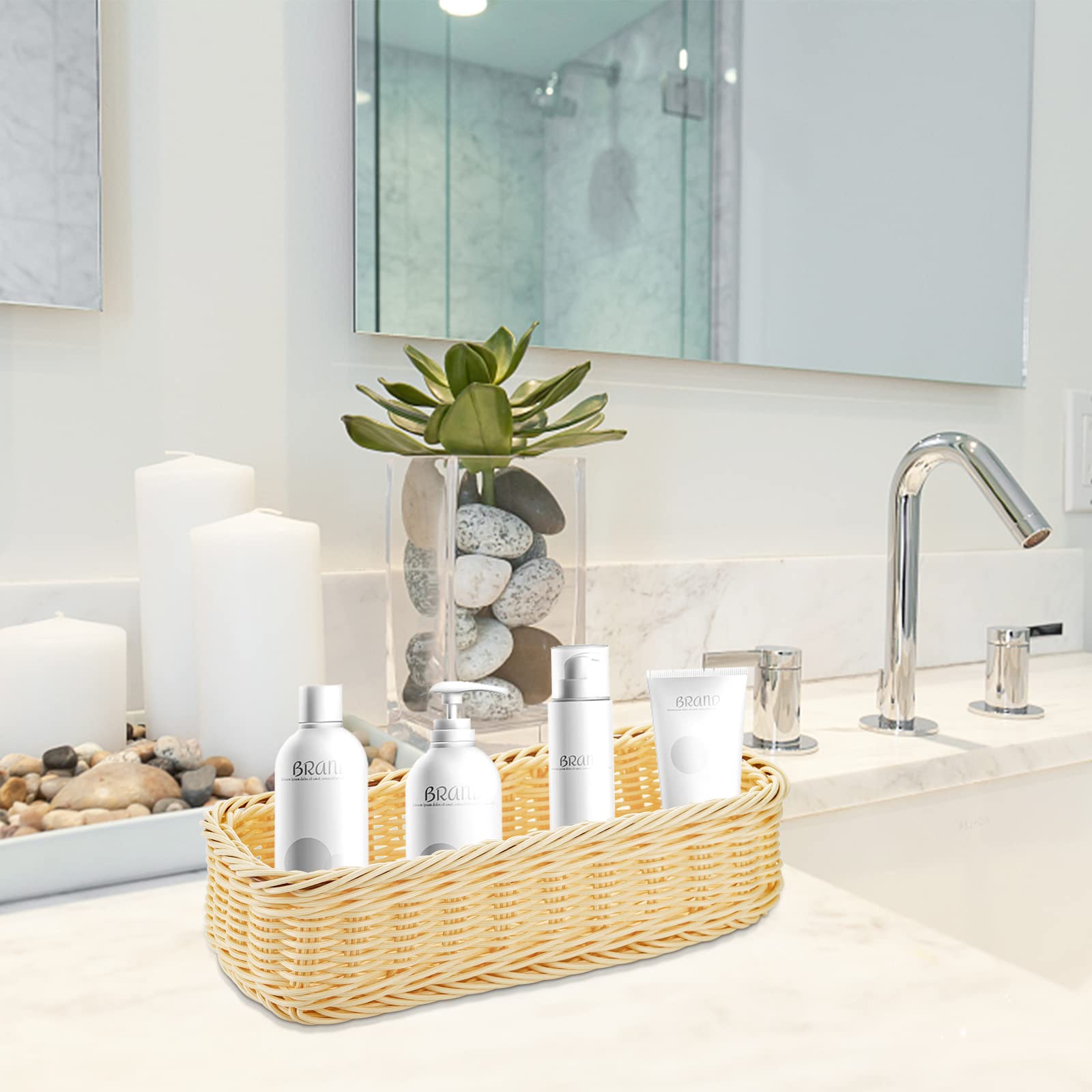 Scénarios d'utilisation : Les paniers à pain en osier pour servir sont applicables pour la cuisine, la salle à manger, le bureau, le restaurant, le supermarché, les magasins de fruits, les pique-niques en plein air et d'autres endroits. Des quantités suffisantes et des tailles appropriées vous permettront de les utiliser pour de nombreux scénarios pour répondre à différents besoins de stockage dans votre vie quotidienne Dimensions approximatives : 15,75 x 11,81 x 3,15 pouces / 40 x 30 x 8 cm Contenu : 10 paniers à pain en osier. Corbeilles Pain Lot 3 Rotin Synthétique | 40x30x8cm Matériau. Plastique polypropylène · Couleur. brun · Marque. Tioncy · Forme. Rectangulaire · Style. Moderne · Utilisations recommandées pour le produit. Décoration... Corbeille A Pain Leclerc Tioncy Lot De 10 Corbeilles à Pain En Osier Tressé Imitation Corbeille A Pain Professionnel Caractéristiques : Matériau principal : plastique polypropylène., Couleur principale : marron. Largement applicable : la corbeille à fruits en osier peut être utilisée pour une variété d'articles, tels que les fruits, les légumes, le pain, les collations, les bonbons, les clés, les portefeuilles, les téléphones, les mouchoirs et ainsi de suite, jouer au service, au rangement, à l'affichage et à d'autres rôles efficacement pour vous et vos invités à l'intérieur et à l'extérieur Digne de confiance à appliquer : nos paniers alimentaires pour service sont fabriqués en plastique polypropylène de qualité avec un savoir-faire exquis, sûr et inodore, épais mais léger, empilable et durable, facile à utiliser, à transporter et à nettoyer, pas facile à porter, à casser ou à décolorer, capable de vous servir pendant une longue période Remarques : Les mesures étant prises à la main, les tailles indiquées peuvent varier légèrement. Forme rectangulaire : chaque panier rectangulaire en osier mesure environ 40 x 30 x 8 cm, facile à transporter et à ranger, ce qui peut facilement contenir vos aliments sur la plupart des plans de travail.