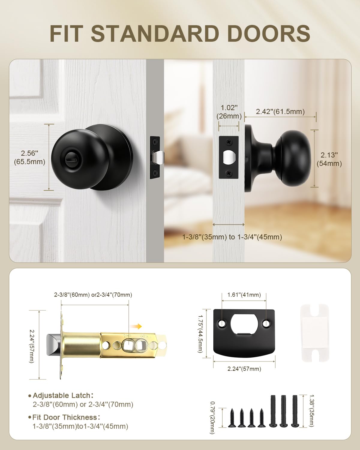 2 Crochets Muraux Adhésifs, Crochets Porte-serviettes Ronds En Acier Inoxydable 304 Pour Salle De Bain Et Cuisine Noir 96105280 Convient pour une épaisseur de porte de 35 à 45 mm. Tout ce dont vous avez besoin est une porte et un tournevis cruciforme. Remarque : si les longues vis reliant les boutons sont installées dans les piliers de la poignée de porte, veuillez les visser avant l'installation. Porte-serviette en acier inoxydable anneaux ronds de serviette ronde... * Épaisseur de la porte : 35 à 45 mm. Il est adapté pour différentes pièces, comme la cuisine, la chambre, la salle de bain et d'autres pièces où l'intimité est nécessaire. * Matériau : acier inoxydable. * Loquet réglable : 60 ou 70 mm. Installation sans soucis : livré avec les instructions d'installation (français non garanti) et les composants de montage nécessaires. Caractéristiques du produit : · Réversible pour portes droites ou gauches. Il est fabriqué en acier inoxydable, durable et robuste. Contenu : - Boutons de porte., - Loquet réglable. GOBEKOR Lot De 3 Boutons De Porte D'intérieur En Bronze Huilé Bouton de porte d'intimité [sans clé] : les boutons de porte d'intimité sont utilisés dans la chambre, la salle de bain et d'autres pièces où l'intimité est nécessaire. - Matériel de montage. Si vous êtes à la recherche d'une poignée de porte de rechange robuste et peu coûteux, essayez-le. Belle finition et matériau de qualité supérieure : la finition noire mate classique rend votre maison élégante et moderne. En cas de problème de qualité, n'hésitez pas à nous contacter. * Type : boutons de porte ronds * Diamètre de la rosace : 65 mm. · Installation facile et rapide, juste pour une seule personne.
