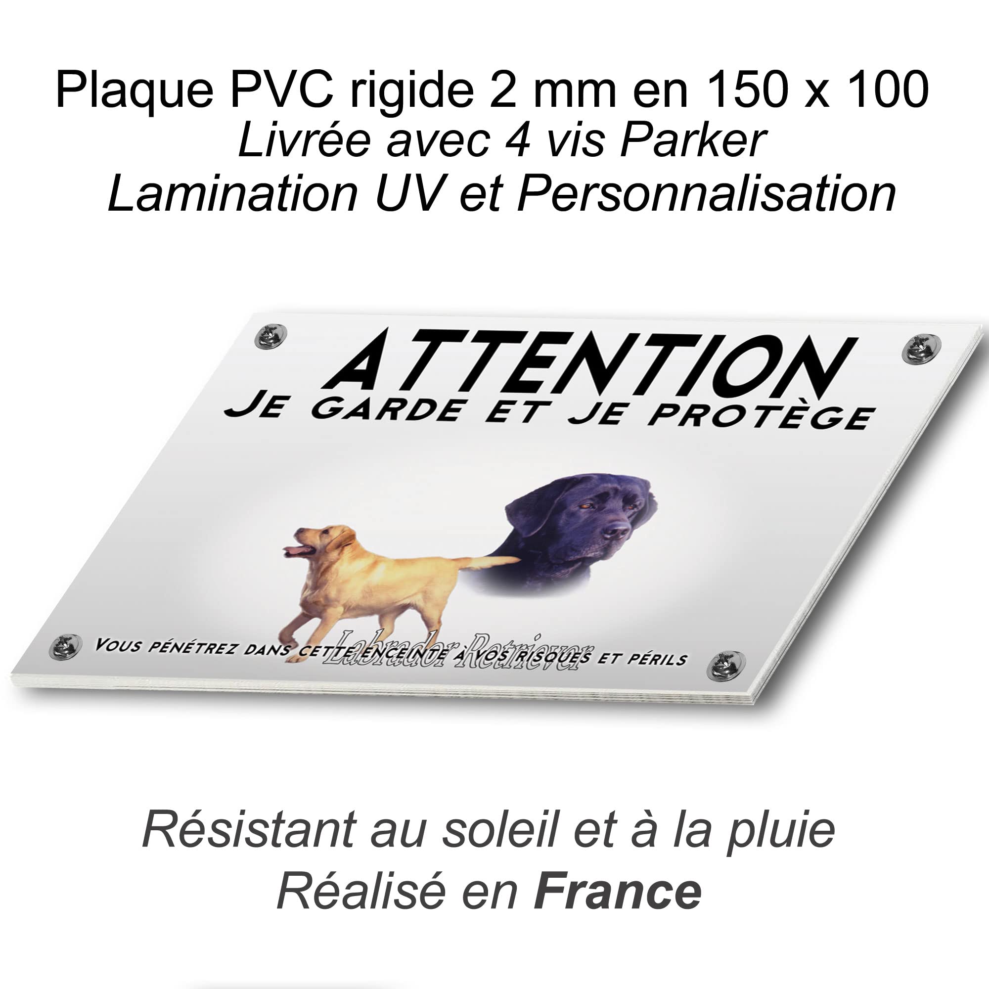 Autocollant plastifié pour une garantie 10 ans,, Nul Idéal pour une utilisation intérieure ou extérieure, Pose et précautions : Il est préférable pour une parfaite adhésion de l'autocollant de nettoyer le support avec de l'alcool à brûler. Dimensions de 200 mm x 133 mm Autocollant chien-labrador-1 | MPA Déco Adhésif imprimé avec encres à pigment, La prise complète de la colle de l'autocollant est effective après 24 h. adhesif plastifié pour être collé sur toutes les surfaces lisses,; plaque PVC de 2 mm prepercée pour un une plaque pas cher; support métalique dibond pour un... Se colle sur toutes surfaces lisses Si des traces de colle restent présentes après son passage, elles peuvent êtres retirées avec un chiffon et de l'alcool ménager. Poursuivre la pose du sticker en collant l'extrémité du sticker après avoir centré l'adhésif, En stock permanent Réalisé en France 🇫🇷 Pubblimania Labrador retriever Panneau signalétique pour chien en aluminium rigide, d'une épaisseur de 3 mm (20 x 30 cm) · 4,84,8 sur 5 étoiles (24 Cane Corso Plaque De Portail Attention Chien Labrador Noir Ici C'est Panneau Chien Labrador Commencer la pose en rabattant une partie du support sous l'adhésif,