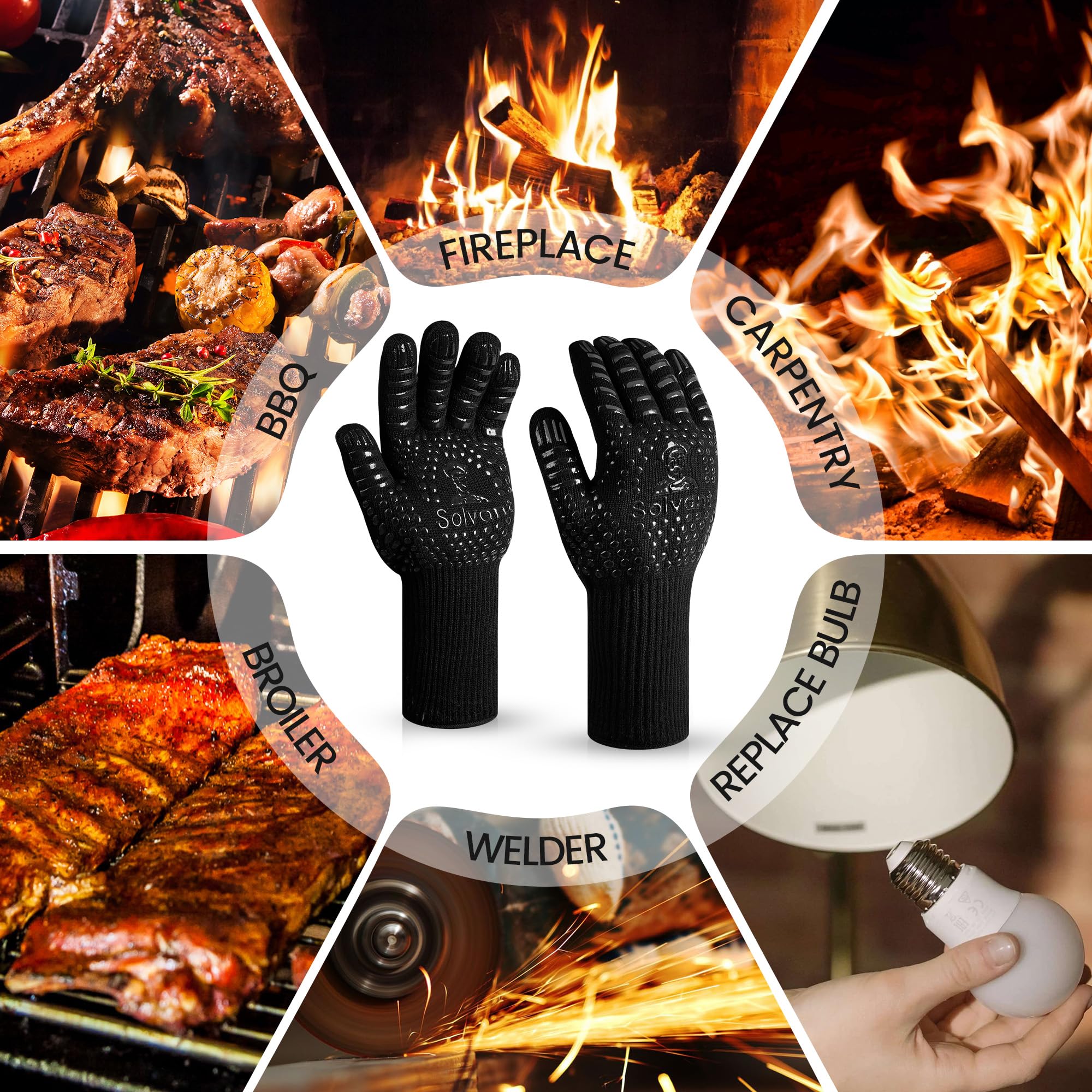 Gants de Barbecue, Gants Anti Chaleur Jusqu'à 800°C, Antidérapants Silicone Ignifuge Gant Cuisine avec Protection de l'avant-Bras, pour BBQ, Gril, Cuisson au Four, Cheminée (L/XL/XXL, Noir) 4,4 (500) Plus de 200 achetés au cours du mois dernier 1199€ (6,00€/unité Est-ce stable et antidérapant ? La couverture complète des points en silicone vous permet de maintenir les objets chauds de manière stable et sûre, évitant ainsi la plupart des accidents. Quel matériel ? Est-il résistant aux températures élevées ? Fibre ignifuge haute densité + silicone antidérapant + doublure polyester-coton, une conception plus sûre par rapport aux autres gants de barbecue et une résistance à haute température jusqu'à 800 degrés (environ 5 à 10 secondes). Gant Barbecue, Gant Anti Chaleur, Gants de Four Jusqu'à 800°C Gant Barbecue SPGOOD Gants De Barbecue,Gant Cuisine Pour Barbecue Four Anti-Chaleur Barbecue Accessoire 😀 CONFORT LONGUE DURÉE : La doublure intérieure est faite d'un tissu en coton confortable, étroitement cousu afin que vous puissiez la porter longtemps sans avoir à vous inquiéter. Peut être utilisé pour les grillades en plein air, le micro-ondes, le four, la cuisinière, l'entretien des véhicules, le soudage, la réparation électrique et d'autres industries à haute température. 💪POLYVALENT!:Comme une alternative parfaite aux gants de cuisson, aux gants de cuisine et aux gants de four. Même si vous mettez la main dans le four, vous n'avez pas à craindre de vous brûler le bras. 🔥PROTECTION THERMIQUE : Triple protection : fibres ignifuges haute densité + silicone antidérapant + doublure polyester-coton. Excellente résistance à la chaleur] Les gants de barbecue sont principalement composés de fibres synthétiques de haute technologie, de silicone et de coton de haute qualité, qui ont une excellente résistance à la chaleur, au feu et au feu. être exposé à une flamme nue et est conçu pour résister à des températures allant jusqu'à 800 °C (1472 °F) pendant 10 secondes... Est-ce confortable à porter ? La doublure intérieure est solidement cousue avec du coton confortable, ce qui la rend extrêmement confortable à porter pendant de longues périodes, vous permettant de cuisiner sans souci.