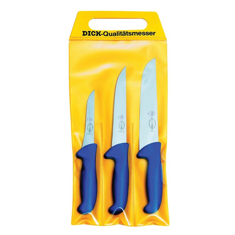 Couteaux Boucher Professionnels Couteau Chef Dick Premier Plus 30 Cm Couteaux De Boucher Professionnel Ensemble de 5 couteaux Dick Red Spirit avec étui, lames inox et manches ergonomiques pour une découpe professionnelle de précision. Référence : DL384 Trousse de 11 pièces haut de gamme avec étui robuste verrouillable | Matériau : acier carboneMarque : DickDimensions : 480(L) x 750(L) mmMatériel : MétalCouleur : NoirPoids : 2,58 kgCouteaux haut de gamme permettant de traiter tous les mets : légumes, fruits, viandes, poissons, pains et pâtisseriesAffûtés et polis à la mainLames Couteau aiguisé et ement équilibré Idéal pour les professionnels de la restauration, cet Ensemble de Couteaux Premier Plus 11 pièces avec Étui en métal a des dimensions de L 480 x L 750 mm. Le... Couteaux Boucher Professionnels Ensemble De 11 Couteaux Professionnels - Avec Etui - Dick Couteau Boucher Professionnel Dick Premier Plus Ensemble de couteaux 11 pièces avec sac, Matériel: Similicuir Contenu : pelle parisienne, fourchette 17,8 cm, spatule 12,7 cm, trancheuse dentelée 21,6 cm, couteau 7,6 cm, couteau à filet 17,8 cm, couteau à désosser 15,2 cm, couteau à éplucher 8,9 cm, couteau de chef 21,6 cm, couteau utilitaire 25,4 cm