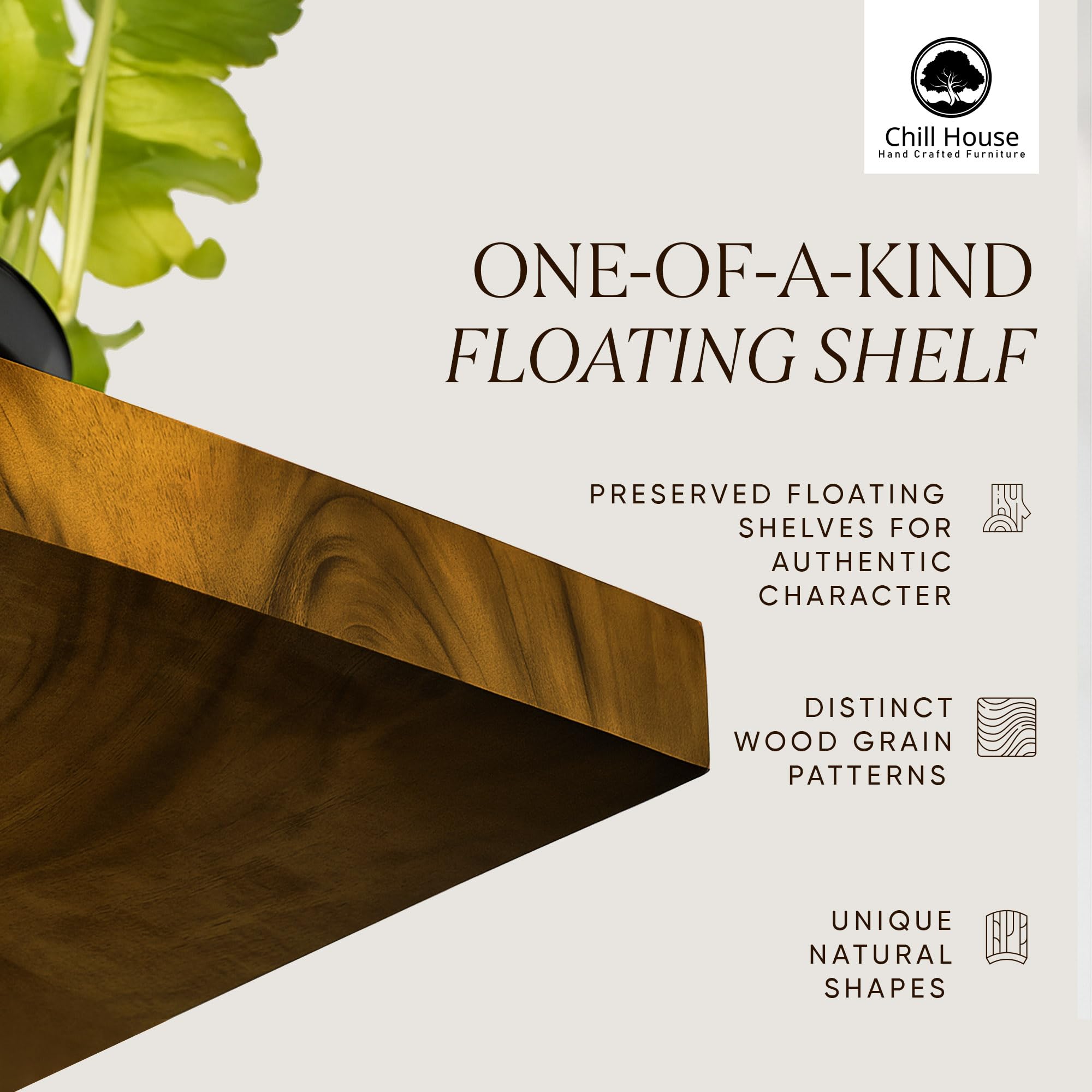 Fixations --- Toutes nos étagères chez Chill House sont livrées avec des trous pré-percés. Ceux-ci cachent les supports des étagères. Leur design minimaliste mais élégant permet une utilisation créative dans les salons, les cuisines, les chambres à coucher ou les bureaux. Nos bois contiennent une variété de belles caractéristiques uniques, telles que des fissures, des nœuds, des nœuds, des torsions et des serpents et des bordures qui ajoutent du charme à la pièce. Rustique En Chêne Massif Bois Bloc Étagère Flottante,Style Nordique *Nos étagères ne conviennent actuellement qu'aux murs solides et ne fonctionneront PAS avec des murs en plaques de plâtre non sécurisés. Toutes les étagères Chill House peuvent supporter jusqu'à 20 kg par étagère. Bois - Les meubles Chill House sont fabriqués à la main dans notre atelier du nord-est au Royaume-Uni. Toutes les fixations dont vous avez besoin pour installer votre ou vos étagères sont incluses dans votre commande. Notre bois Les meubles Chill House sont fabriqués à la main dans notre atelier du nord-est du Royaume-Uni. Toutes les fixations dont vous avez besoin pour installer votre étagère/étagères sont incluses dans votre commande. Fabriqué à partir de bois de pin massif provenant de forêts européennes, assurant un produit de haute qualité et respectueux de l'environnement. Le grain naturel du bois ajoute un charme rustique, ce qui le rend parfait pour les styles de décoration rustiques et modernes Disponibles dans des longueurs allant de 40 cm à 190 cm et dans trois largeurs différentes (15 cm, 22 cm et 30 cm), ces étagères offrent une polyvalence inégalée pour répondre à vos besoins. étagère Bois Murale Chill House Wayne/Live Edge Étagère Flottante Rustique, étagère Murale En Bois 22x4.4cm, Noyer, 80cm Grande Etagere Murale Donnez du style à votre mur avec cette étagère flottante Chill House ! En pin massif, finition chêne naturel, dimensions 90 x 22 x 4,4 cm. Design épuré et rustique, elle s'intègre partout : salon, cuisine, chambre... Fabriquées à partir de matériaux de haute qualité, les étagères Chill House sont conçues pour durer et offrent un support solide pour les livres, les objets de décoration ou les objets essentiels de la vie quotidienne. Si vous avez des questions concernant les fixations, n'hésitez pas à nous contacter. Avec six superbes finitions colorées, elles s'intègrent parfaitement dans les décors modernes, rustiques ou classiques, et rehaussent le charme de votre espace. Matériel Chillhouse Chez Chill House, nous mettons l'accent sur la qualité et l'accessibilité et, depuis le début, nous sommes guidés par notre vision, qui consiste à faire de nos meubles les meilleurs possibles. Nos bois présentent une variété de caractéristiques uniques, telles que des fentes, des fissures, des nœuds, des arcs, des torsions, des serpents et des bords flous, qui ajoutent au charme de la pièce.