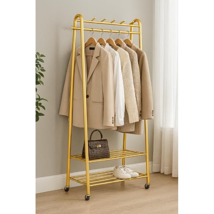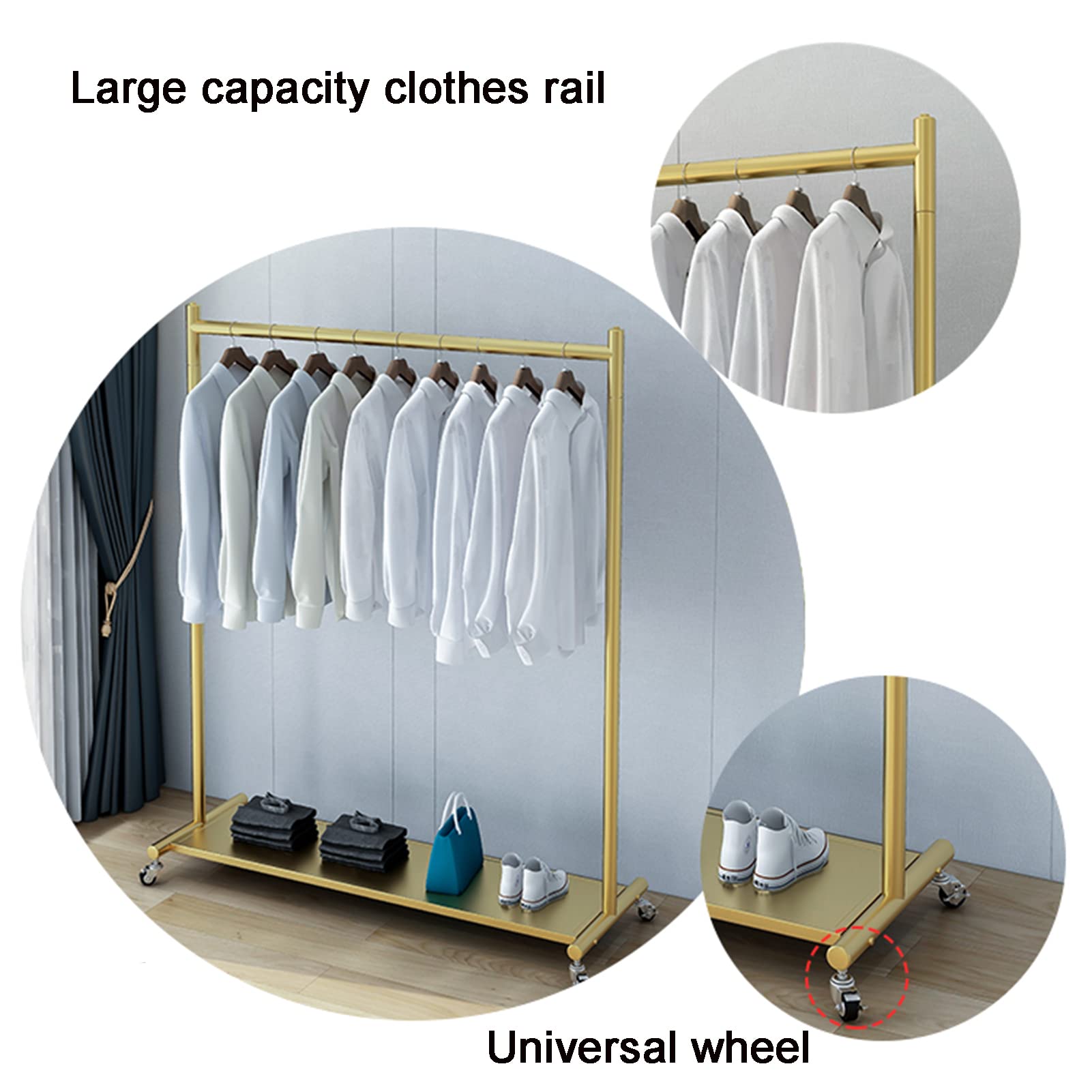 --L : 149 x 36 x 160 cm., Matériau : métal., Couleur : doré. Largement utilisé : le design moderne est parfait pour la chambre, le salon, le magasin, la boutique ou partout où vous avez besoin d'un espace supplémentaire pour organiser ou ranger vos vêtements. Design moderne : conçu avec la taille parfaite pour s'adapter à votre chambre et dressing, ce vêtement de style industriel garde vos vêtements et accessoires toujours organisés. unho Porte Manteau Mural Doré : Portant à Vêtement avec Étagère Portant Caractéristiques : Dimensions du produit : - Taille S : 120 x 36 x 150 cm. Élégant et fonctionnel : la couleur or brillant et l'aspect moderne rendent ce support si attrayant. Optimisez votre rangement avec un porte-vêtement VEVOR. Ce portant à vêtements en métal peut accrocher des manteaux d'hiver lourds ou des robes longues chics et garder vos vêtements et accessoires propres et bien rangés. Robuste et durable : fabriqué en métal de qualité supérieure, le portant à vêtements moderne est robuste et durable. Les roues verrouillables vous permettent de rouler ce portant à vêtements d'un endroit à un autre, et d'arrêter ce portant n'importe où. Les instructions sont incluses dans le colis, vous pouvez facilement assembler l'étagère moderne en 20 minutes. Portant A Vetement Doree Portant à Vêtements Doré Sur Roulettes 150 X 36 X 160 Cm, Portant à Vêtements Portable Multifonction 81 Kg, Cintres Pour Vêtements, Chemises, Costumes, Etc. | FR Porte Manteau Avec Roulettes Couleur: Or métallisé. Dimensions: L 150 x P 40 x H 165 cm. Présentoir robuste et élégant pour boutiques, concept stores et exposants Ce portant à vêtements droit fixe en métal doré, dimensions... Pratique : livré avec roues verrouillables et pieds antidérapants.