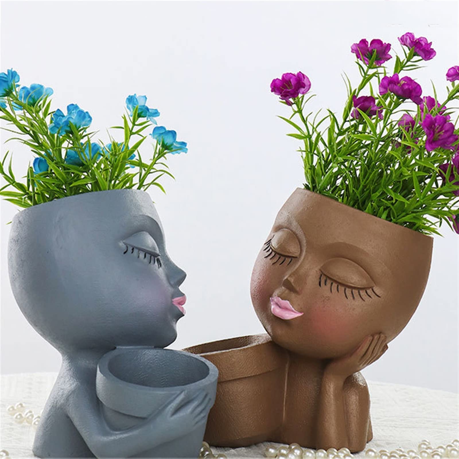 Durable et léger : le pot de fleurs WEWEOW est fabriqué en résine de haute qualité, léger mais durable, et garantit que le pot de fleurs ne se fissure pas et ne se décolore pas au fil du temps. C'est également un excellent cadeau pour vos amis et votre famille qui aiment le jardinage et profiter de la décoration de la maison, et comme cadeau pour les anniversaires, la fête des mères, Noël, les anniversaires ou les pendaisons de crémaillère. Jardinière de tête de visage en résine, jardinière de visage souriant Non seulement les pots de fleurs sont mignons et amusants, mais avec beaucoup d'espace pour laisser libre cours à votre propre créativité, nos fantastiques pots de fleurs à tête féminine sont un moyen sûr de mettre en valeur votre créativité Cadeau idéal à la fois en intérieur et en extérieur : une tête de pot de fleurs mignonne, unique et créative attire les regards de tout le monde où vous le placez. Cache Pot Visage Pot De Fleurs En Résine En Forme De Visage Humain Petit Vase De Fleurs Créatif Avec Trou De Drainage Pour Intérieur Et Extérieur Plantes Grasses Pour Décoration De Maison Jardin (Couleur Clair Cache Pot Doré Vous pouvez placer le pot à la fois à l'intérieur et à l'extérieur, sans vous soucier de la pluie ni du soleil. Il y a 2 pots d'ouverture, le diamètre d'ouverture du pot de fleurs/fleurs est de 8,1 cm, le diamètre d'ouverture pour le pot succulent est de 6,1 cm. Multifonction : le pot de fleurs mesure 17,8 x 17,6 cm. BestAlice Pot de fleurs amusant à double tête pour plantes d'intérieur et d'extérieur, pot de fleurs en résine avec trou de drainage : : JardinDemandez le retour de ce produit dans les 14 jours suivant la réception, pour quelque raison que ce soit, afin d’obtenir un remboursement complet (prix de l’article et frais de livraison) dans le cadre de votre droit de rétractation...