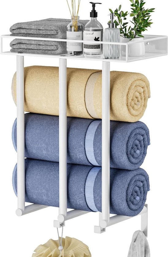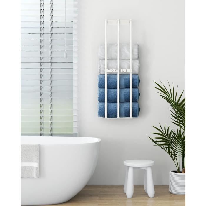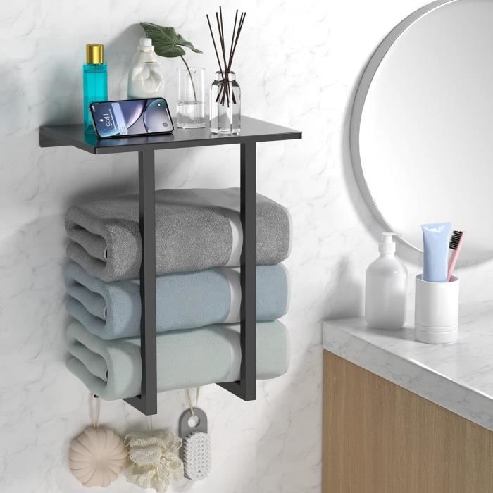 Avec une étagère supérieure en métal qui offre un espace supplémentaire pour placer le shampooing, les mouchoirs, le savon, les gel-douche, etc. Facile à assembler : le porte-serviettes est livré avec des instructions détaillées et faciles à suivre, ce qui rend l'installation un jeu d'enfant et vous permet de terminer l'assemblage en seulement 5 minutes. Tabaling Porte-Serviettes Mural en Espace Aluminium avec 4 Barres 180 euble range serviette de bain Le revêtement résistant à l'usure et à l'abrasion garantit durabilité et une longue utilisation. Porte Serviettes Mural Leroy Merlin Rangement Salle Bain Porte-Serviettes Mural STWWO 56cm Noir - Range Serviettes Roulées Pour Salle De Bain - Métal - Max 16 Serviettes Organisateur Serviettes Roulées Chauffe Serviette Mural Un bel accessoire de salle de bain pour garder les serviettes roulées ou pliées bien rangées et facilement accessibles. Porte-serviettes durable : cette étagère de rangement des serviettes est fabriquée en métal de haute qualité. Parfait pour être utilisé dans les chambres, les salles de bains d'invités, les petites salles de bains, les camping-cars, les hôtels, les spa, etc. Porte-Serviettes Mural Avec Étagère En Métal Et 3 Crochets Porte...