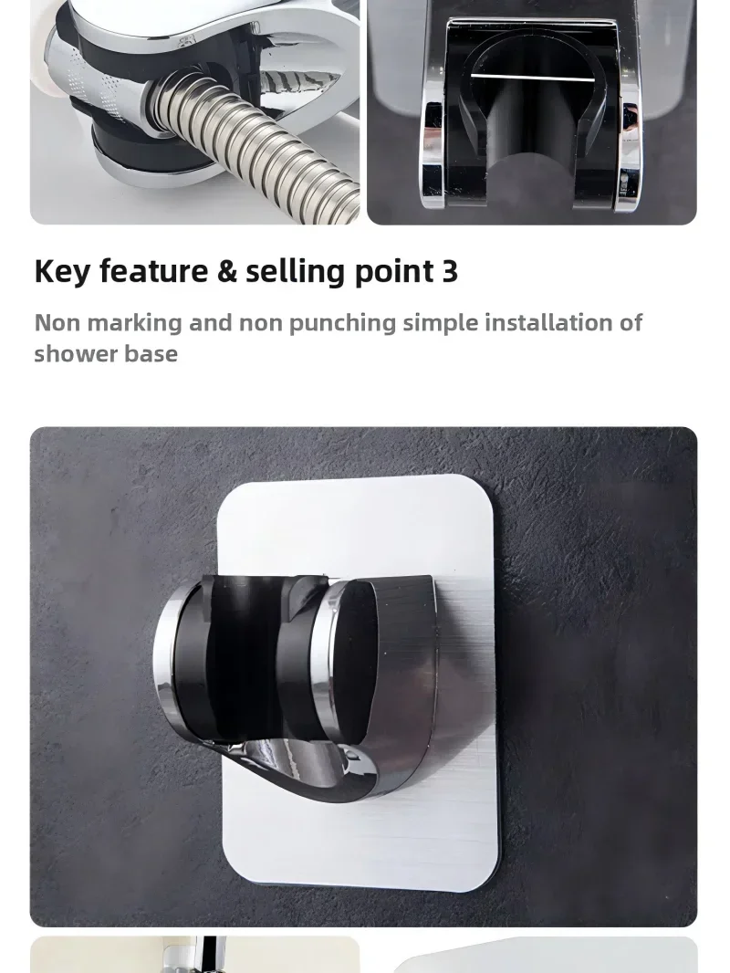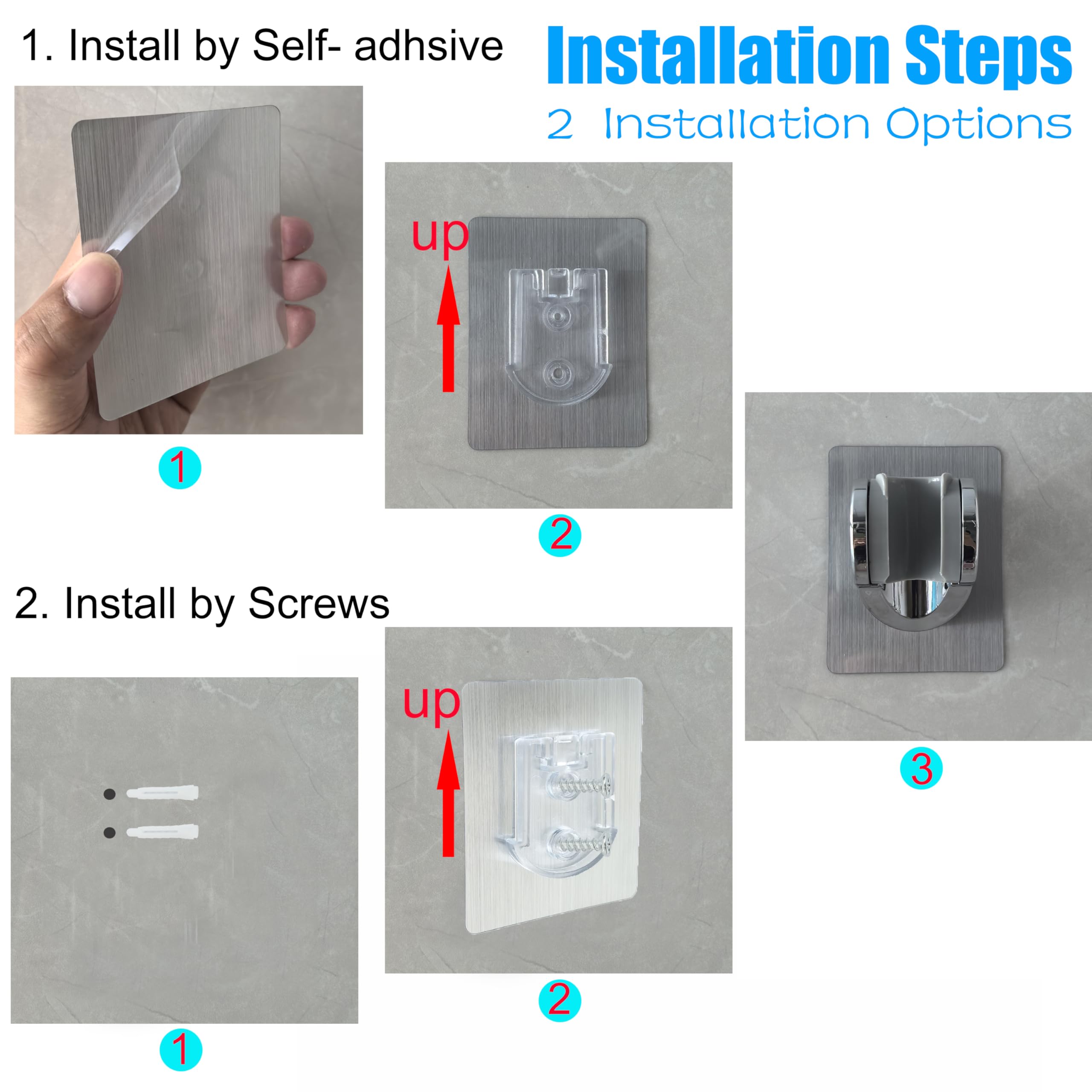 Avantages : fabriqué en ABS de haute qualité, durable et imperméable. Pas de perçage ni de vis nécessaires, sans danger pour la surface du mur. Poids léger mais robuste en plastique de qualité technique. Support de Douche Mural Sans Perçage Support de Pommeau de Douche à Vous détestez percer votre mur ou votre carrelage pour installer un support de douche ? L'utilisation de notre support de pommeau de douche peut vous donner un résultat incroyable. 24 heures après la suspension, l'effet de poids est meilleur. Support De Douche Mural, Support De Pommeau De Douche Mural, Support De... Matériau : plastique ABS. Contenu : 1 support de pommeau de douche Installation par bandes adhésives : application sur des surfaces dures, planes et lisses, sans poussière, sèche et sans cendres. Veuillez ne pas le mettre sur des carreaux texturés, des carreaux concaves, du verre dépoli ou du bois brut. Instructions d'installation : nettoyez l'endroit souhaité avec une serviette ou une serviette en papier pour vous assurer que le mur est sec et exempt d'humidité. Retirez ensuite le film de protection de l'arrière, fixez le support et appuyez doucement sur les bords. Après 24 heures d'attente, le support est prêt à l'emploiRéglage flexible de l'angle pour un maximum de confort - Le... Support Pommeau De Douche Adhesif Lofekea Support De Pommeau De Douche, Support De Douche Réglable, Auto- Adhésif, Support Mural étanche (1 Pièce, Noir Support Douchette Mural Adhésif puissant réglable., Léger mais robuste., Instructions : 1., Nettoyez la surface, assurez-vous qu'il n'y a pas d'eau et d'huile sur le mur (une fois l'installation terminée devient étanche)., 2., Décollez le couvercle de protection à l'arrière du support du tuyau de douche, puis appuyez et pressez l'air du centre vers le bord.