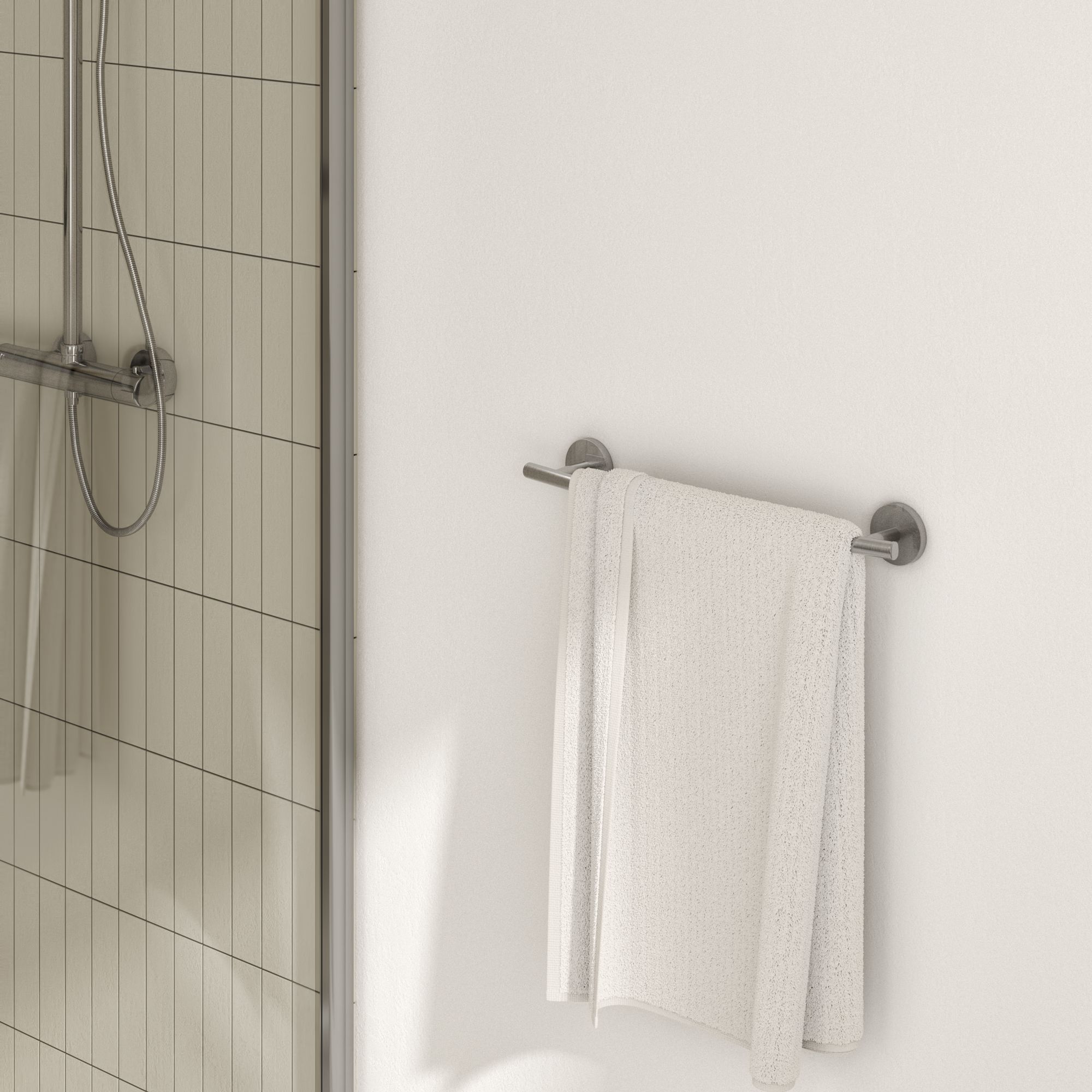 Barre porte-serviettes carrée simple côté 45,7 cm en finition chrome poli pour portes de douche en verre, diamètre : 3/4, convient aux portes de douche en verre lourd sans cadre de 1/4 à 1/2 mm d'épaisseur, caractéristiques du trou de porte en verre : 1/2_ trous de diamètre 18_ centre à centre Finition chromée polie , Barre porte-serviettes 45,7 cm , Diamètre : 1,9 cm Porte-Serviettes de Salle de Bain Chrome Poili, Anneau Porte Serviettes avec Double Barres 40cm Barre Porte-serviettes Droite 37cm Pour Radiateur Barre à serviettes de coin carrée pour portes de douche · Profil bas idéal pour les portes coulissantes · Convient aux portes de douche en verre trempé d'une...