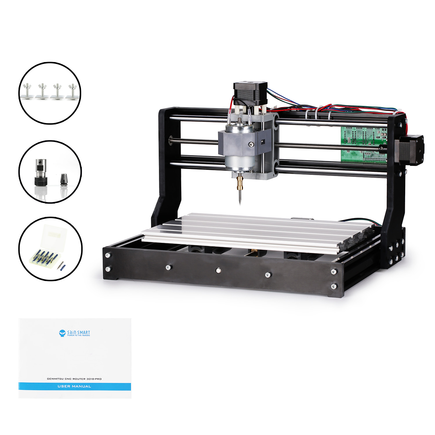 Manuel (français non garanti). Nous offrons une garantie d'un an et un support technique à vie. Logiciels et systèmes pris en charge : compatible avec le logiciel/bougie GRBL et prend en charge Windows XP/7/8/10 et Linux. Outils de gravure 4YANG CNC Machine kit Mise à niveau de CNC 3018 Pro... Contenu de l'emballage : 1 fraiseuse CNC 3020 Plus (zone de gravure : 300 x 200 x 70 mm) ; 1 broche CC 500 W ; 1 arrêt d'urgence ; 2 interrupteurs de fin de course ; 1 stylet d'axe Z ; 1 carte de contrôle GRBL ; 1 x 10 embouts de gravure ; 1 x disque U 2G avec logiciel GRBL ; 1 utilisateur en anglais. Gravure et découpe en un : cette machine peut à la fois sculpter et couper, elle peut couper des produits en bois de 8 mm à la fois. Achetez maintenant chez VEVOR. Les moteurs pas à pas sont équipés de boutons manuels pour un réglage et un positionnement faciles. La plate-forme est compatible avec la plupart des fixations CNC. Moteur de broche amélioré de 500 W : équipé d'une broche de 500 W 48 V 11 000 tr/min (avec pince E11), plus puissant, ce qui est idéal pour une variété de travaux de perçage et de gravure dans une variété de métaux, tels que le laiton, le cuivre et l'aluminium 6061, etc. MINI fraiseuse CNC ProMax 3020 300 x 200 x 40 mm Graveur Laser 30w ou 40W Imprimante Bois EUStock RATTMMOTOR Update 3020 Plus Routeur CNC, Graveur à 3 Axes Fraiseuse Cnc Larger work area]: The work area of the 3020-PLUS router is larger than that of the 3018-PRO, increasing to 300 x 200 x 70mm). Our worktable has a special... La course verticale de toutes les pièces métalliques de l'axe X-Z peut atteindre 73 mm, avec une haute précision de ± 0,01 mm.