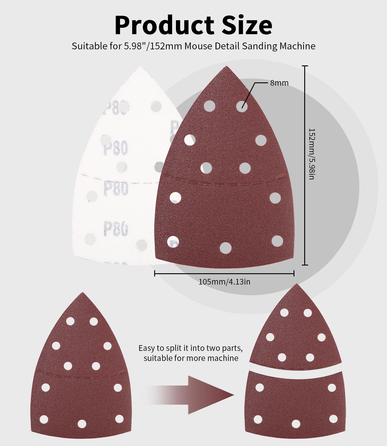 Caractéristiques : - Il est adapté pour le meulage, le polissage et l'élimination de la rouille, le métal et non métallique, le bois, le caoutchouc, le cuir, le plastique, la pierre, le verre et d'autres matériaux. Contenu de l'emballage : 40 patins de ponceuse à grain 40/60/80/120/150/180/240/320/400/600/800/1000 (selon votre choix) TP-DW 18/225 Li - Solo | Ponceuse murale sans fil [Facilité d'utilisation élevée]: Tampons de ponçage triangulaires avec un support en papier épais - qui ne se détériore pas facilement lors du polissage, avec 5 trous pour la poussière, gardez votre travail et les surfaces des tampons de ponçage propres, et aide à améliorer l'efficacité de ponçage, et le papier de... Fabriqué à partir d'oxyde d'aluminium, le papier abrasif est durable et antistatique pour différents types de ponçage et de polissage. Papier De Verre Pour Ponceuse à Souris, Grain 240, 5 Trous --Crochet et boucle arrière pour une fixation rapide. Caractéristiques : Type d'article : papier abrasif., Matériau : aluminium., Couleur : rouge-marron., Dimensions : 140 x 90 mm., Taille du grain : 40#/60#/80#/100#/120#/150#/180#/240#/320#/400#/600#/800#/1000#. - Fabriqué à partir d'oxyde d'aluminium, le papier de verre est durable et antistatique pour différents ponçages et polissages. Elles ont 11 trous pour une fixation facile. Les grains vont de 40 (grossier) à 240 (fin), donc parfaites pour dégrossir, poncer et finir. Accroche velcro (hook...