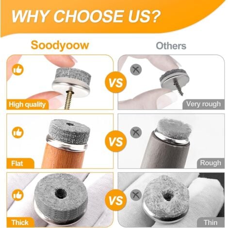 Protection efficace du sol : nos patins en feutre de qualité supérieure d'un diamètre de 22 mm offrent une protection fiable pour les revêtements de sol délicats tels que le bois, le stratifié, le carrelage et le vinyle. Évitez les rayures, les traces d'usure et les dommages Patins en feutre à vis Description du produit : Lot de 50 patins de protection de sol en feutre de laine et métal pour meubles, diamètre 22 mm.Fabriqué en Chine. Les patins en feutre pour chaise sont en fer et sont robustes et résistants. Le feutre durable, antidérapant et jusqu'à 5 mm d'épaisseur permet aux meubles de... Pieds De Meubles Lot De 50 Patins En Feutre Pour Meubles U2013 Patins De 1092832 24PCS Patins En Feutre Pour Meubles Ø22mm, Patin Meuble À Cl Paris 75001