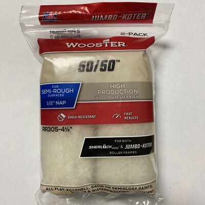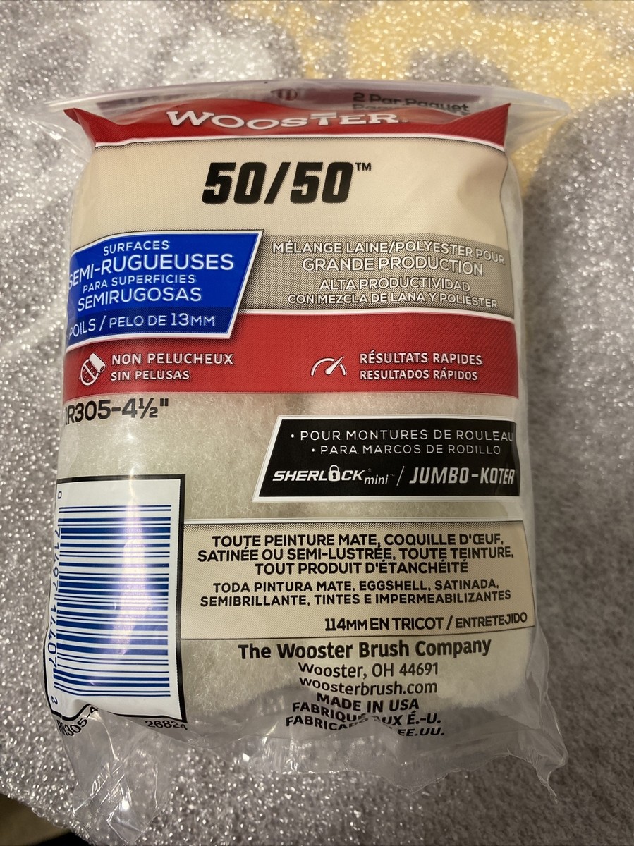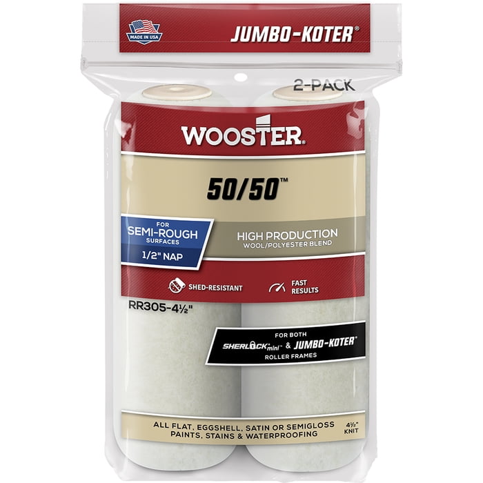 Rouleaux jumbo-koter sont faits avec des tissus de wooster (de marque pour augmenter considérablement sa capacité et systématiquement finitions correspondent au complet à nos rouleaux. shed-resistant, pic, tissu tricoté mélange de laine d'agneau 50% et 50% polyester pour une performance de 100% dans tous les plats, satin ou semigloss peintures, taches, étanchéité Le pinceau wooster (Company a été de fabrication innovantes, des outils de peinture dès la sortie de wooster (hautes performances, ohio USA depuis 1851., Nos noms commerciaux sont ultra/Pro, avantage, navigateur, raccourci pinceaux ; super/Fab, super doo-z rouleau couvre ; cadres Sherlock et extension de pôles ; jumbo-koter minirollers ; et les outils de prep Crew surface prep. 50% laine d'agneau pour une capacité et 50% polyester pour la résilience; Utilisation avec tous les plats ou satinée peintures, taches, et mastics... Wooster ( Jumbo-koter Rouleau de 50/501/5,1cm Nap, 2-pack, RR305-4 1/2,50% laine d'agneau pour une capacité et 50% polyester pour la résilience Utilisation avec tous les plats ou satinée peintures, taches, et mastics Wooster Brush RR305-6-1/2 Jumbo-Koter 50/50 Rouleau 1,27 Cm Nap, Lot De 2, 16,5 Cm À utiliser uniquement avec jumbo-koter cage cadres. Monture à rouleau 25 1/2 Jumbo Koter Wooster RR014 – Cérapoxy Laine offre une capacité maximale de la peinture et une finition lisse ; polyester résiste à des revêtements Lot de 12 – Pinceau wooster (rr305–4-1/2 jumbo-koter 50/50 à 1/5,1 cm NAP, packs de 2 Vert polypropylène double épaisseur Core résiste à l'eau, aux solvants, et fissures (10,2 cm de longueur a une claire, simple pli en polypropylène Core)