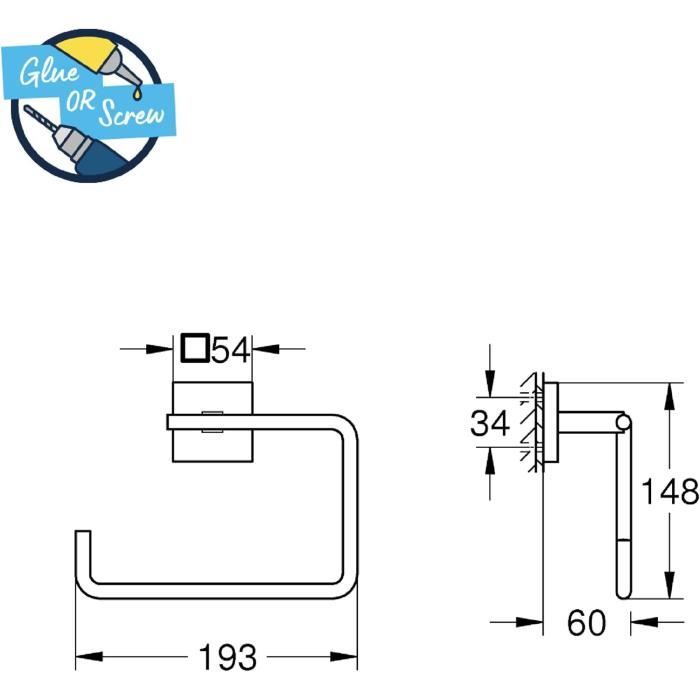 Pour une transformation étonnamment facile de votre salle de bains, collez ou vissez, c'est vous qui voyez ! Il suffit de l'essuyer avec un chiffon sec – la finition de surface lisse est résistante et assure un éclat lumineux durable. QuickGlue signifie que le perçage appartient au passé. Porte Serviette Salle De Bain GROHE Start Cosmopolitan Anneau Porte-Serviette Mural Pour Salle De Bain Fixations Cachees Metal A Coller Avec Grohe Quickglue Ou A Visser Chrome Porte Brosse Wc Il est possible d'acheter de la colle supplémentaire - nous vous recommandons 1x GROHE QuickGlue A1 Le porte-serviette QuickFix Cosmopolitan de Grohe est une solution élégante et pratique pour le rangement des serviettes dans les salles de bains ou les... Platine de fixation incluse (40 917 000) Pour une transformation étonnamment facile de votre salle de bains, collez ou vissez, c'est vous qui voyez ! Vous n'avez jamais essayé de changer vous-même les accessoires de votre salle de bains ? Avec les accessoires QuickFix, c'est aussi simple que possible ! Tout le monde en est capable Vous gagnerez beaucoup de temps à nettoyer pendant que votre robinet est toujours neuf Pour l'installation la plus simple possible, tout ce dont vous avez besoin est d’un seul ensemble QuickGlue (41127000) pour les accessoires avec une plaque de montage (par exemple anneau porte-serviette) ou d’un ensemble double (41128000) pour ceux avec deux plaques de montage (par exemple porte-serviettes) Porte-serviettes a' anneau Grohe Essentials (18 cm - Chrome - En stock) - Bricolage