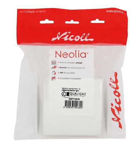 Peut être posée pour ventiler les vides sanitaires. Grille d aération classique - B164 - polystyrène blanc - 179x179x15 mm Choisir une grille de ventilation pour l'esthétique et la performance Chez , les grilles de ventilation sont solides et adaptables à toute configuration. Apposez-les sur carrelage, façade, tuyaux, gaines, vitres de fenêtres ou parois minces. La pose se fait en fonction du support : trouvez la grille qui convient à la configuration existante ou requise. En termes de design... Grille De Ventilation Grille D'aération NEOLIA Spéciale Gaz Blanc 180 X 180 Mm Diamètre 125 Mm - NICOLL Grille Ventilation Conforme à la législation gaz (QUALIGAZ) , pour tube Ø100mm , coloris : blanc Grille DESIGN de ventilation diamètre 100mm (passage d air 50cm²) blanc pour appareil à gaz... SoDescriptionLe produit Grille design avec une forme qui optimise le passage de l'air et casse les courants d'air. Fin de série - Offre exceptionnelle !, ! Son profil protège les murs contre les salissures dues à l'eau. grille design de ventilation - diamètre 100mm - blanc - pour appareil à gaz - nicoll gdt100b