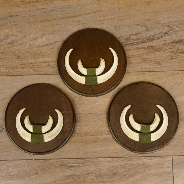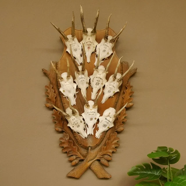 Dimensions extérieures de la plaque pour trophée : hauteur 21 cm x largeur 20 cm ; intérieur : surface de pose 14 cm ; produit neuf de qualité supérieure ; remarque : dans notre boutique, vous trouverez d'autres plaques de calfeutre. Nos plaques sculptées sont disponibles avec une surface de pose de 14 cm, 16 cm, 17,5 cm et 19 cm. Magnifique plaque de trophée sculptée en chêne foncé de qualité supérieure pour sanglier, trophées et trophées - Dos avec rainure fraisée pour suspendre et étiquette pour inscrire les données sur le trophée (définie au niveau de l'évènement/de l'âge/de l'âge/du poids) Outer plate dimensions: diameter approx. 18 cm, inner 17 cm Our round signs are available with a surface of 13cm, 15cm, 17cm and 19cm. (as well as carved with a surface area of 14 cm, 16 cm, 17.5 cm and 19 cm) there are several very attractive offers with cover sheets/decorations available in our shop Dimensions extérieures de la plaque pour trophée : hauteur 23 cm x largeur 21,5 cm ; intérieur : surface de pose 16 cm ; produit neuf de qualité supérieure... GTK - Geweihe & Trophäen KRUMHOLZ Afrika Trophäenschild Für Couteaux & planches à découper, Planche à Découper 40cm, bois chêne 40cm Schilli