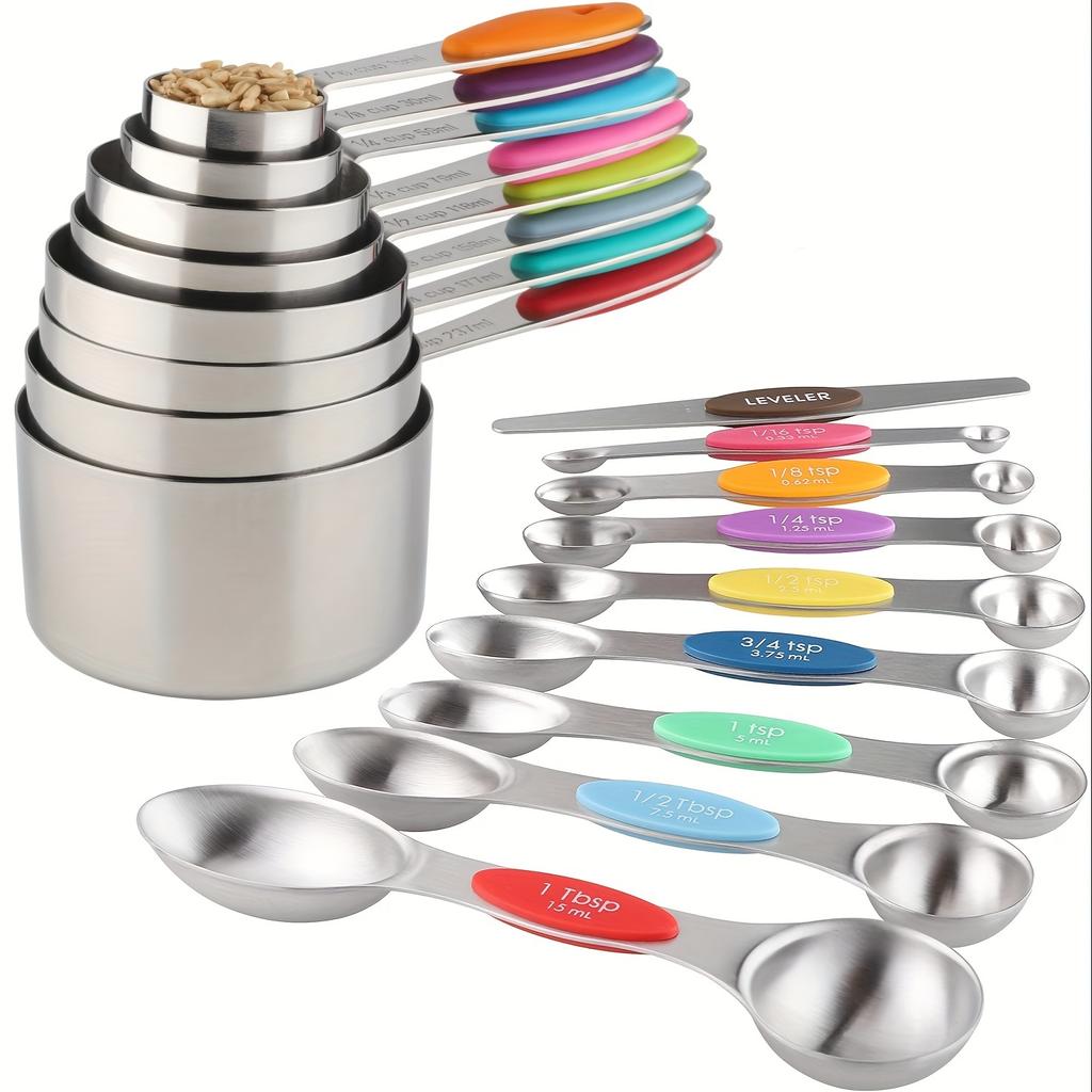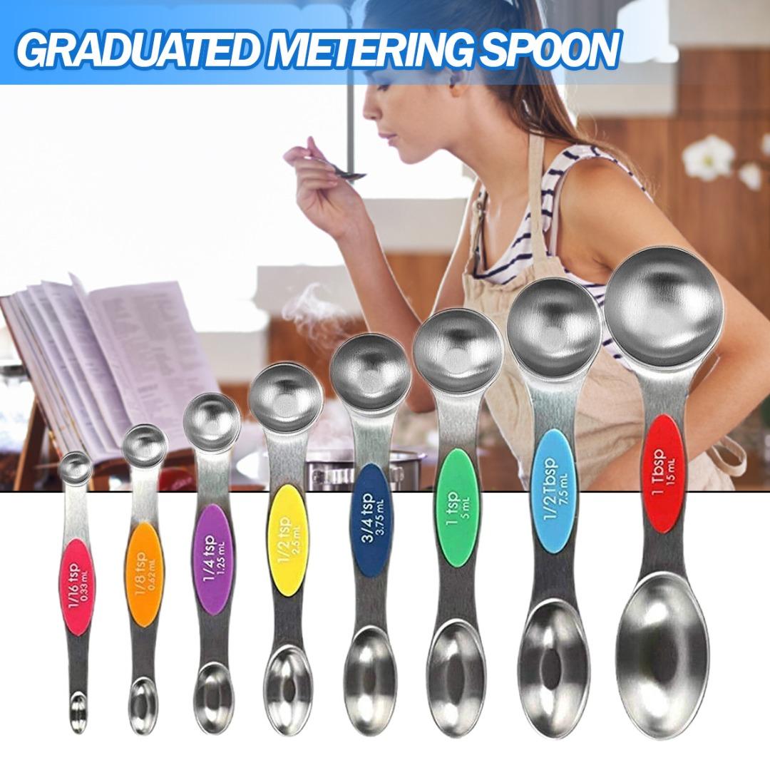 La poignée en acier inoxydable est gravée avec des unités métriques standard visibles pour garantir que vous utilisez la bonne mesure. Vous pouvez rapidement saisir la cuillère à mesurer dont vous avez besoin pendant la cuisson. Ensemble de cuillères à mesurer magnétiques : la cuillère à mesurer a un centre magnétique qui permet un emboîtement facile et un gain de place. Vous pouvez rapidement saisir la cuillère à mesurer dont vous avez besoin pendant la cuisson Chaque cuillère à mesurer a un centre magnétique puissant permettant un emboîtement facile et un gain de place, au four ou au lave-vaisselle pour saisir rapidement la cuillère nécessaire. Poids de l'article : 190 g Matériau de qualité supérieure nos ensembles de cuillères à mesurer sont fabriqués en acier inoxydable de haute qualité, ce qui rend ce lot de 7 cuillères à... Mesure : chaque cuillère est clairement marquée avec des mesures en ml, cuillère à café et cuillères à soupe. Matériau de qualité supérieure : nos ensembles de cuillères à mesurer sont fabriqués en acier inoxydable de haute qualité, ce qui rend ce lot de 7 cuillères à mesurer très durables, durables et passent au lave-vaisselle Les cuillères à soupe ont des marques de mesure métriques gravées qui sont faciles à lire. Facile à utiliser et à ranger : chaque cuillère à mesurer a un centre magnétique puissant permettant un emboîtement facile et un gain de place. 8-teilige stapelbare magnetische Messlöffel Set Doppelseitige Edelstahl-Messlöff Lot De 8 Cuillères à Mesurer Double Face En Acier Inoxydable Avec Les ensembles de cuillères peuvent être imbriqués les uns avec les autres et fixés ensemble.
