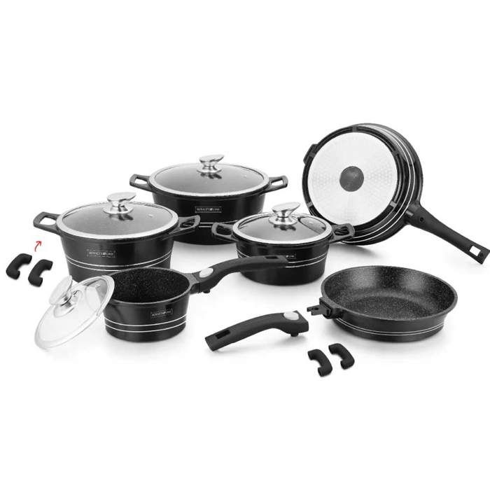 Gardez vos ustensiles de cuisine comme neufs avec nos protections de casseroles et poêles de qualité supérieure. La couleur noire maintient un aspect élégant et professionnel tout en cachant les taches potentielles. Tailles polyvalentes : le lot comprend 6 protections... Série de 3 casseroles fonte d'aluminium Cette série de 3 casseroles est fabriquée en fonte d'aluminium effet pierre avec un revêtement anti-adhésif.Les diam Ces protections durables garderont vos ustensiles de cuisine en sécurité pendant des années, qu'il s'agisse de fonte robuste ou de verre délicat. Optimisez le rangement de votre cuisine tout en gardant vos casseroles et poêles en parfait état. Parfait pour tout, des petites casseroles aux grands fours, ces protections garantissent une couverture complète et un ajustement parfait. Leur design empilable garantit que vos ustensiles de cuisine restent organisés et protégés sans vous soucier des rayures ou des bosses. Commandez cet ensemble dès aujourd'hui et protégez vos ustensiles de cuisine avec nos protections solides, fonctionnelles et élégantes. Ces protections permettent également d'économiser de l'espace. Facile à nettoyer, il suffit de le laver à la main ou de le nettoyer avec du savon doux, puis de le laisser sécher à l'air libre. Ensemble De Casseroles Et Poêles Avec Couvercles 15 Pièces, Batterie De Cuisine à Poêles et casseroles Chasseur : une répartition uniforme de la chaleur... Rl-Es1014M - Lot De 14 Casseroles Et Poêles En Pierre De Lave Avec