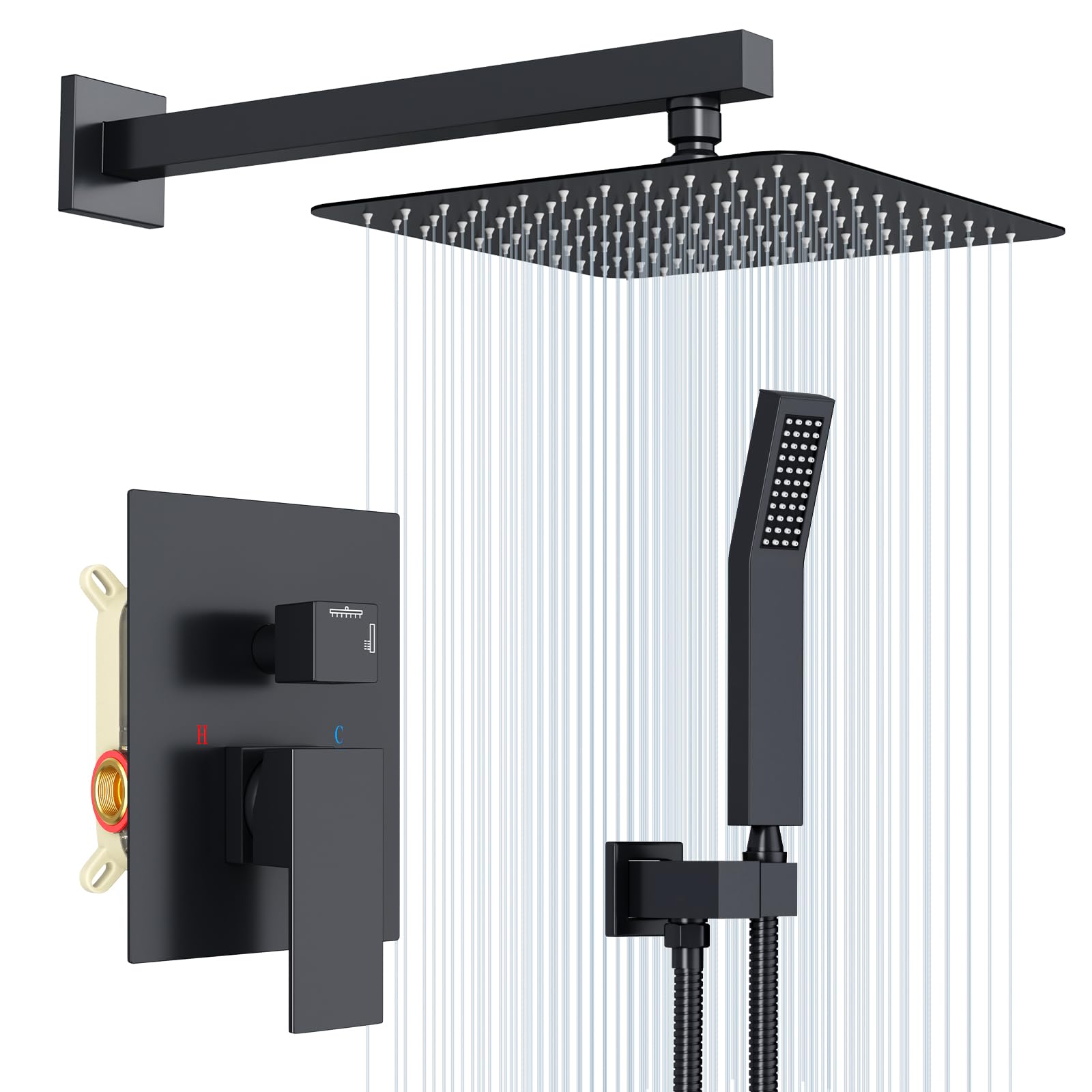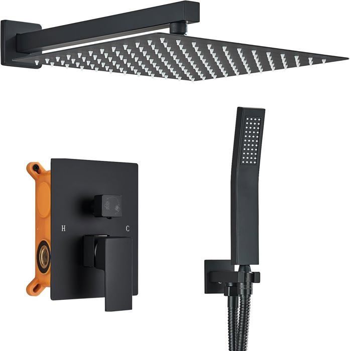 Taille du jet supérieur : 40 x 40 cm/30 x 30 cm Dimensions de la base du support de douche : 6 x 6 cm. Haute qualité: Corps en cuivre durable haute pureté,évitez les éclats et les fuites par temps extrêmement froid. Résistance à la corrosion acide et alcaline Style : moderne Matériaux : laiton, acier inoxydable, silicone Procédé : pulvérisation en plastique Type d'insert de valve : insert de valve en céramique Assemblage requis : oui. Pommeau De Douche Noir Colonne De Douche SucceBuy Ensemble De Douche Avec Pommeau De Douche Carré Effet Pluie De 254 Mm Et Douchette à Main, Ensemble De Douche Mural Avec Robinet Pommeau De Douche Pour Ensemble Utilisation : Convient pour les maisons, hôtels, écoles, gymnases, piscines, appartements, etc. Description : Une douche confortable peut vous aider à vous débarrasser de votre fatigue, et le choix d'un ensemble de douche est crucial. Le débit d'eau doux et doux et l'excellente performance vous offrent une expérience de douche agréable à chaque fois et en font un choix idéal. Avec son aspect classique et élégant, ce système de douche s'adapte bien aux différents styles d'intérieur de salle de bain. Robuste et durable : le laiton de haute qualité et l'acier inoxydable avec le procédé exquis d'injection de plastique rendent ce produit résistant aux rayures quotidiennes, à la corrosion, à la rouille et à l'usure, ce qui peut répondre à vos besoins pour une utilisation à long terme dans les salles de bains humides Le niveau à bulle garantit l'équilibre de la valve lors de l'installation et le couvercle de la valve protège la valve des rayures Longueur du bras de douche : 40 cm. Ensemble de douche de salle de bain en laiton noir avec Le grand pommeau de douche rotatif à 360°, la douchette (7,87 x 2,36 pouces) et le support de douche réglable à 360 ° vous offrent une expérience de douche confortable L'installation encastrée ne prend pas trop de place dans la salle de bain, ce qui permet d'économiser efficacement de l'espace et d'améliorer l'utilisation de l'espace Cette Collection Modern offre un design épuré et contemporain ainsi que les composantes nécessaires pour une douche complète. Les douches Delta équipées des soupapes déquilibrage de pression Monitor sont conçues pour éviter tout changement soudain et potentiellement dangereux de la température de leau lorsquil y a un besoin deau ailleurs, par exemple pour utiliser un lave-vaisselle... Portez une attention particulière aux consignes de sécurité fournies., 3., Vous pouvez utiliser la boîte pré-montée pour tester au préalable les bouchons ou les fuites., 4., La profondeur de la paroi de la boîte pré-installée peut être mobilisée entre 2,36 et 3,54 pouces du sol carrelé. Grande flexibilité : le tuyau en acier inoxydable de 4,92 m de long vous permet de vous baigner plus facilement avec la douche à la main et élargit la zone de nettoyage pour réduire les angles morts. Design humanisé : la boîte pré-assemblée permet de remplacer l'insert de valve sans démonter le mur, et la haute étanchéité empêche le sable de pénétrer et prolonge la durée de vie. Apparence élégante : la couleur noire classique et les lignes lisses confèrent au produit un aspect élégant qui s'adapte à la plupart des styles d'intérieur et donne à votre salle de bain une esthétique unique.