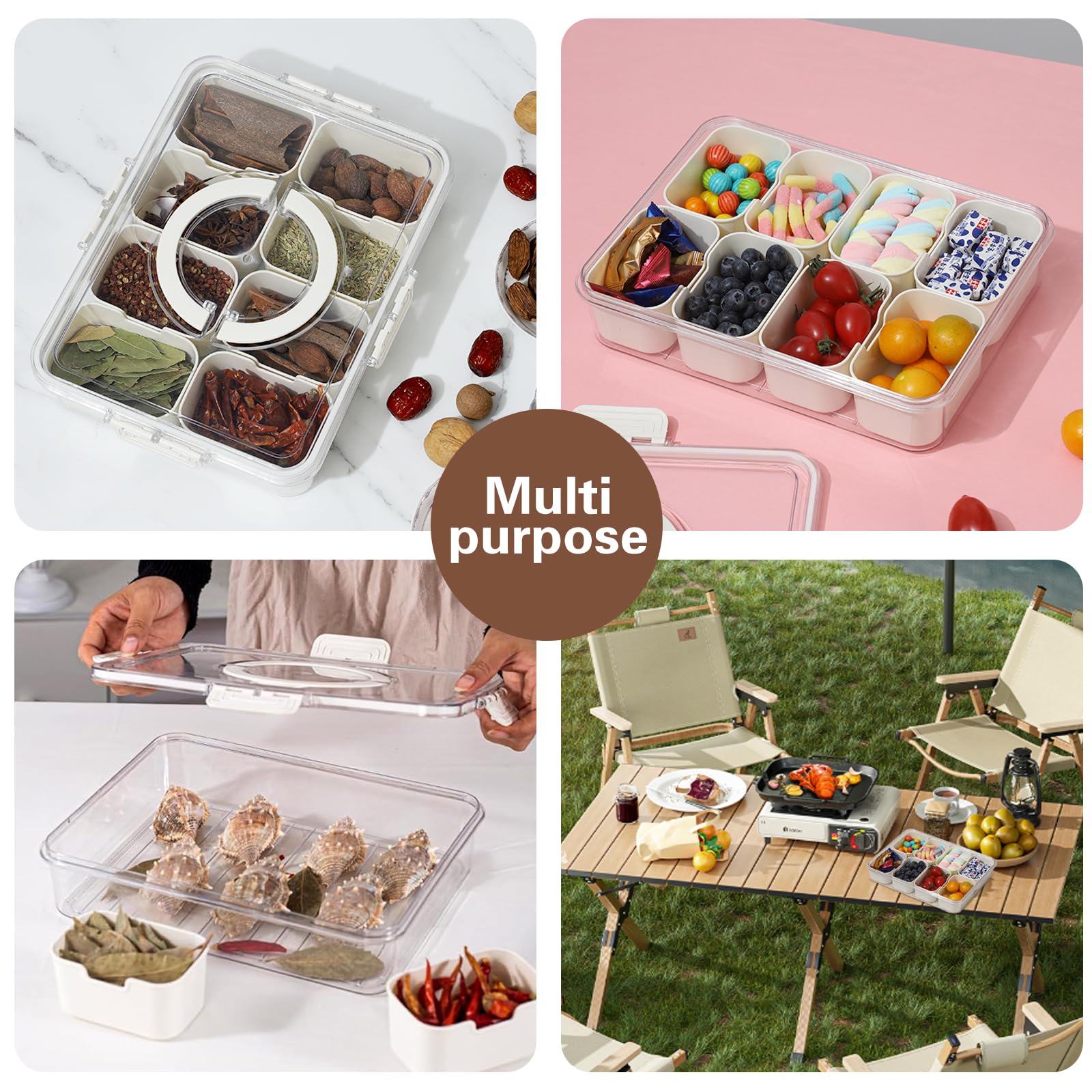 Remarque importante : ne passe pas au lave-vaisselle ni au micro-ondes. Cette boîte à goûter compartimentée convient aux enfants comme aux adultes au quotidien, idéale pour l'école, le travail ou les voyages. Joint d'étanchéité et couvercle sécurisé : un joint en caoutchouc intégré protège vos aliments de la poussière et de l'humidité Qualité supérieure : fabriquée à partir de plastique de qualité alimentaire, cette boîte à goûter est sûre et durable. Plateau Repas Compartiment Contenant Snackle Box, Plateau De Service Divisé à 8 Compartiments Avec Couvercle Et Poignee Pour Aliments Collations Noix Fruits Pique Nique Voyage Tuperware Compartimenté Conception adaptée au réfrigérateur : conçue pour résister à des températures de -20 ° à 60 °, cette boîte à goûter passe au congélateur et sert d'organisateur de réfrigérateur pour les légumes ou les ingrédients frais comme l'ail, offrant flexibilité et commodité dans les options de stockage. Plateau de service divisé avec couvercle et poignée – Boîte à goûter portable, récipient de charcuterie, plateau de collation transparent, organisateur pour fruits, bonbons, noix, collations – pour les fêtes, les voyages et les pique-niques Que ce soit pour une fête d'anniversaire, un pique-nique... Plateau de fruits secs avec couvercle, plateau de service divisé pour maison de Les compartiments intérieurs en polypropylène de haute qualité garantissent la fiabilité, tandis que la boîte extérieure en PET transparent et le couvercle offrent clarté et longévité pour une utilisation prolongée. Les aliments ne sont pas inclus avec ce produit, ce qui vous permet de personnaliser vos collations selon vos préférences.