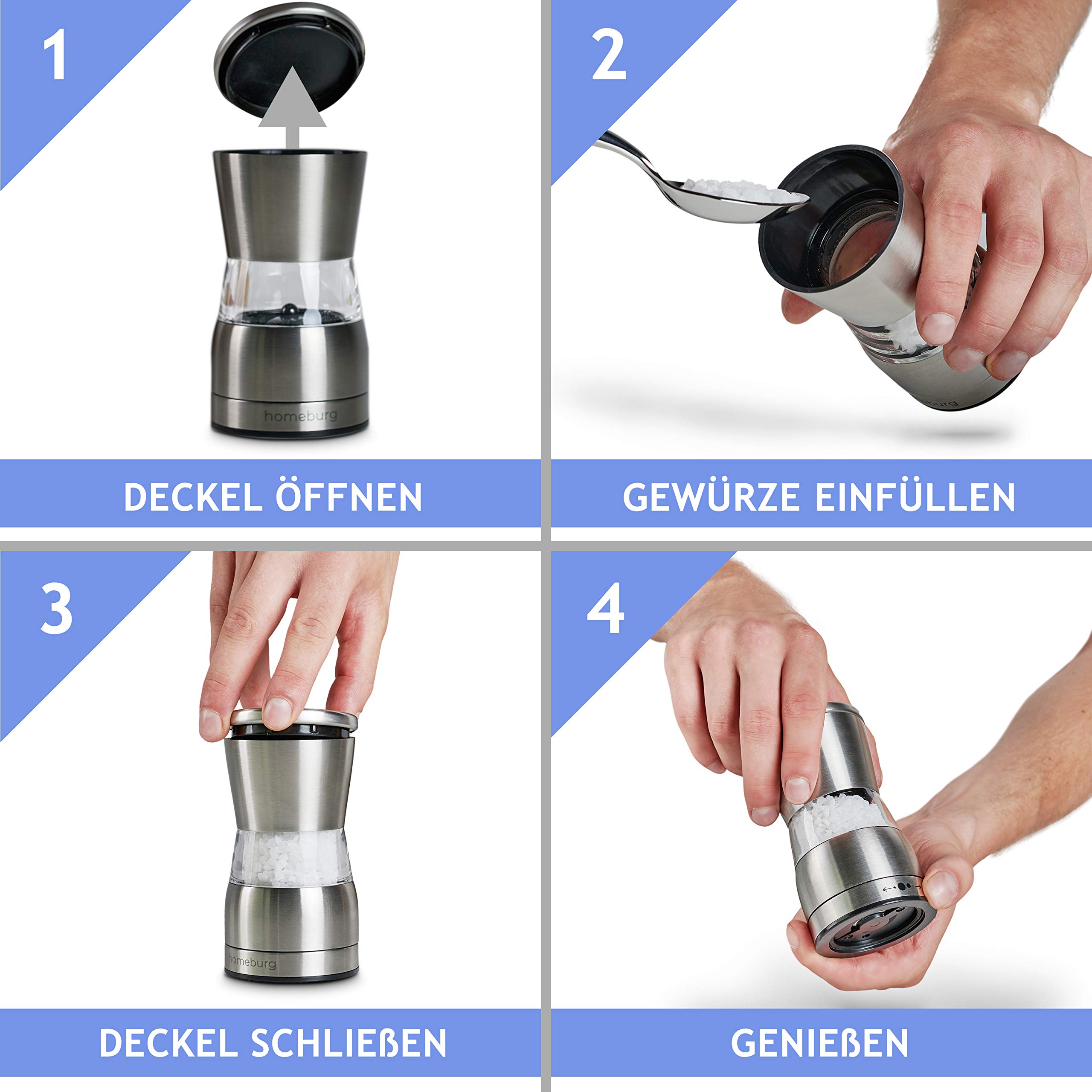 ✔ Moulin à sel et à poivre élégant – Les moulins à sel et à poivre sont en acier inoxydable de qualité supérieure et en verre acrylique solide dans un design élégant. Le sel et le poivre ou d'autres épices séchées peuvent parfaitement libérer leurs arômes. ✔ Remplissage facile des moulins – Les moulins sont faciles à remplir grâce à la grande ouverture et sont donc non seulement exclusifs à l'extérieur, mais aussi pratiques à utiliser. S-Home Unlimited Lot de 2 moulins à sel et poivre manuels 2 en 1 Matériau de haute qualité]Le moulin à sel et à poivre est fait de bois de chêne de première qualité, assurez-vous qu'il ne contient pas de BPA, vous pouvez l'utiliser en toute confiance. Fabriqué en acier inoxydable et en céramique de haute qualité, conçu avec un support en acier inoxydable à l'intérieur pour éviter d'endommager le mécanisme en céramique. Si vous cherchez... Moulin Sel Poivre Homeburg Lot De 2 Moulins à Sel Et à Poivre Manuels Avec Broyeur Moulin à Poivre ✔ Support de moulin parfaitement adapté – Le support de moulin en acier inoxydable et verre acrylique est non seulement décoratif, mais permet aussi de transporter facilement les moulins à la table.