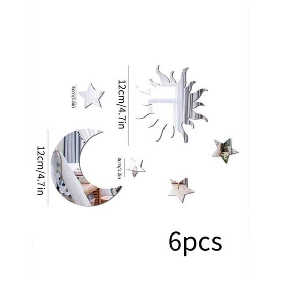 Ces beaux autocollants miroir en acrylique peuvent rendre votre pièce plus lumineuse et plus confortable. Profitez du temps de bricolage : vous avez juste besoin de choisir un endroit propre et sec, puis de retirer le papier au dos de ces autocollants miroir 3D, et d'appuyer doucement dessus à l'endroit que vous voulez décorer. Veuillez le retirer avant utilisation. Étoiles Phosphorescentes Pour Plafond, Autocollants Muraux 3D Lumineux Avec Etoiles Et Lune Parfaits Pour La Chambre Denfant Le Salon Et Comme Cadeau 1 Lune 1049 Etoiles Et Points Vert 87458154 5 nuages, 5 étoiles, 1 suspension murale lune, ciel de chambre, accessoire photo, baby shower, décoration murale de chambre d'enfant, décoration murale de... Stickers Muraux En 3d Décoration Maison étoile Lune Mobile Chambre Enfant Bébé - Canada Autocollant Mural Effet 3d Il y a un film protecteur sur la surface du miroir pour protéger la surface du miroir des rayures. Large application : les jolis autocollants muraux 3D en forme de nuage peuvent être utilisés pour décorer un mur, une porte, une étagère ou une cheminée dans le salon, la chambre, la cuisine, la salle de bain. Personnalisez votre design comme vous le souhaitez, vous pouvez le faire avec votre famille et vos enfants. Il y a une couche d'adhésif blanc au dos. Il y a un film protecteur sur la surface, veuillez le retirer avant utilisation.
